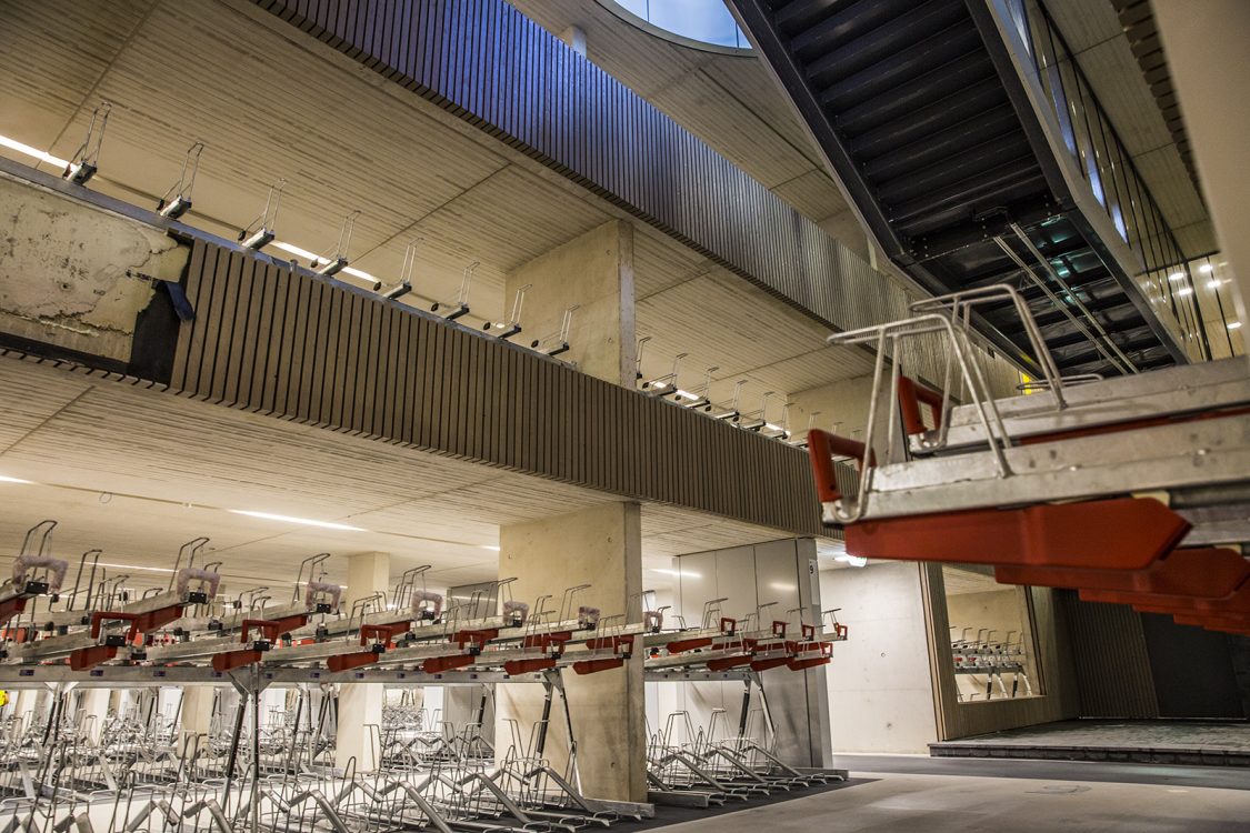 ben er inmiddels in geweest. het is voor een fietsenstalling gewoon heel mooi. maar LEVENSGEVAARLIJK, want zonder begeleiding kom je er NIET meer uit. Er staan GEEN borden hoe je naar het station komt (via een obscure deur en trap voor mensen zonder hoogtevrees) en de uitgang met de fiets kan alleen door de mensen die het uitchecken verzorgen worden gewezen. Maar dan moet je die mensen wel eerst zien te vinden…