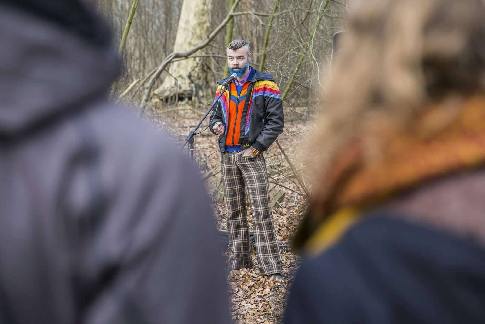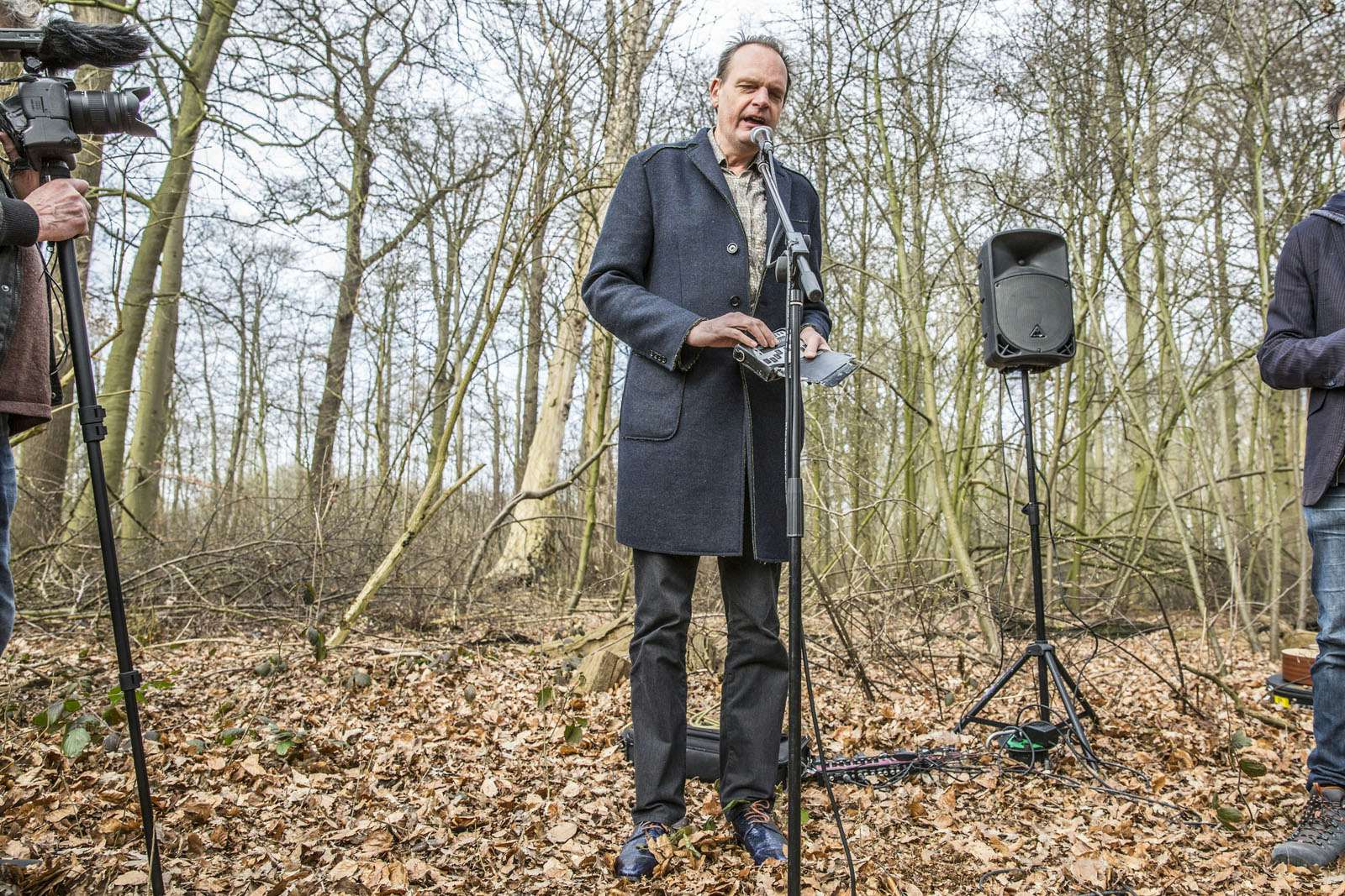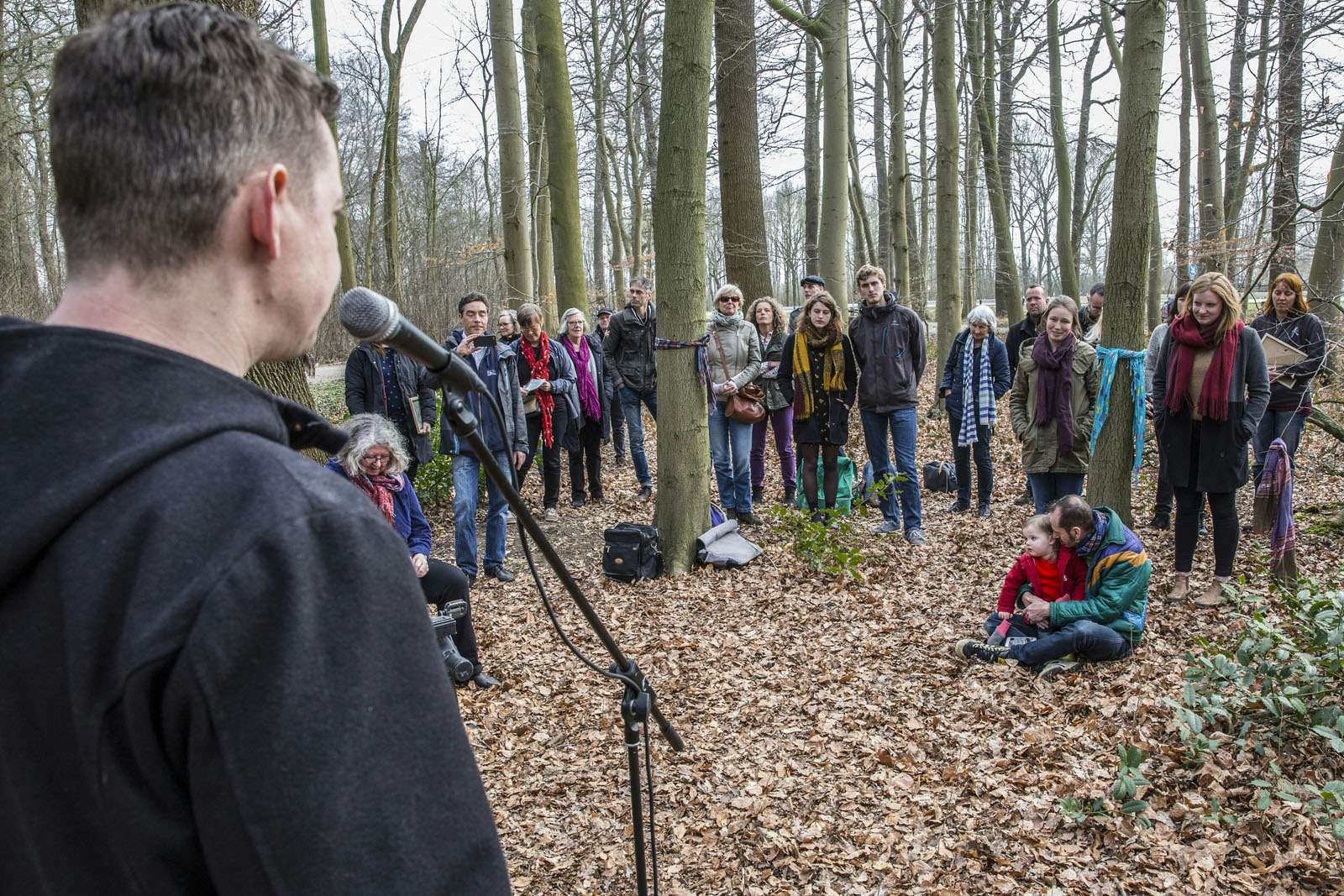 Bekende en minder bekende Utrechters, die allen een boom hebben geadopteerd, lichtte vanmiddag hun motivatie toe voor een handjevol toeschouwers. Sprekers waren onder andere Vincent Bijlo (cabaretier en columnist), Hanneke van Eijken (stadsdichter), Pepijn Zwanenberg (GroenLinks), en Maarten van Heuven (Partij voor de Dieren) maar ook vertegenwoordigers van onder andere studenten en ondernemers.
