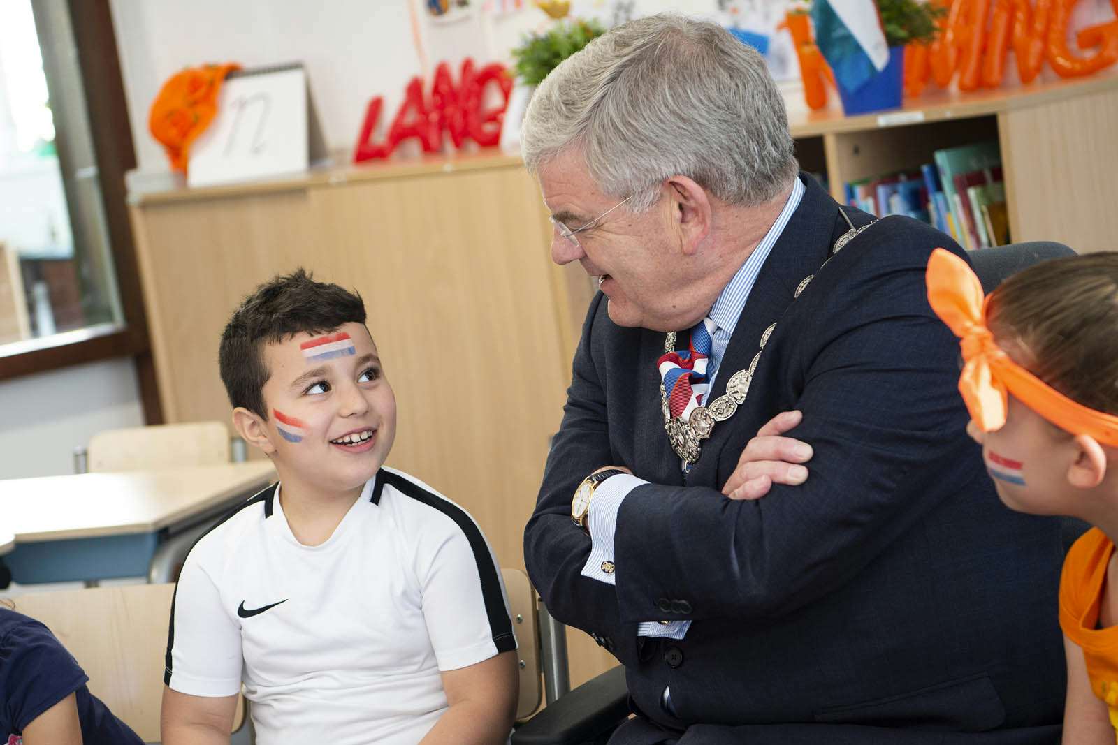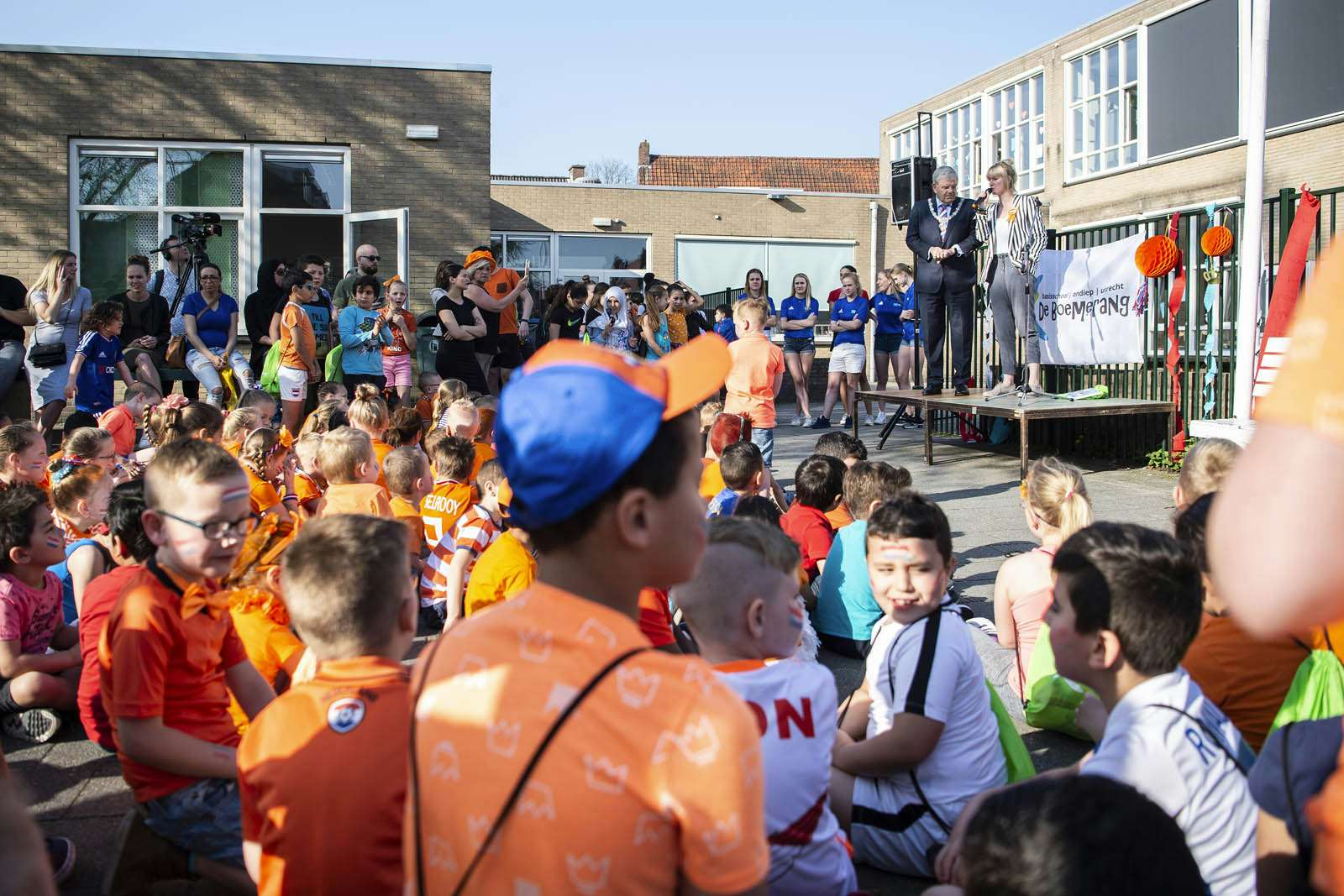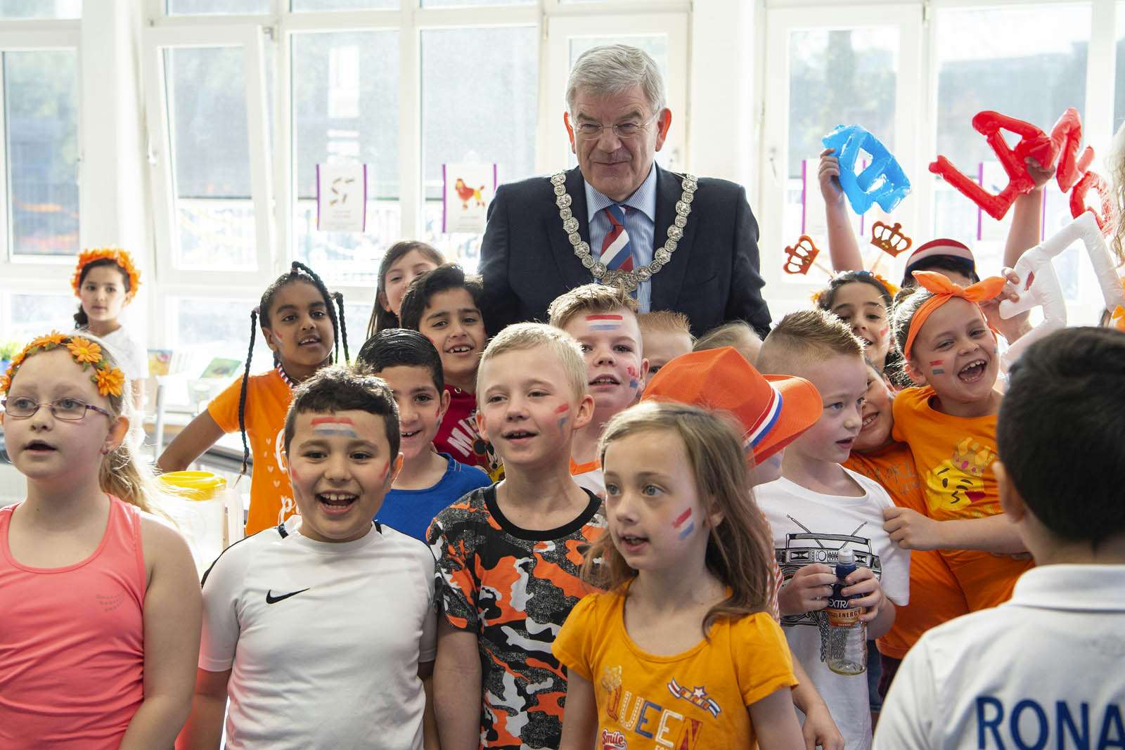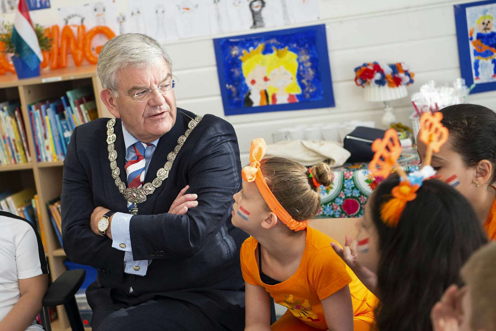 De Utrechtse burgemeester Jan van Zanen was vanochtend te gast bij basisschool de Boemerang in Ondiep. Hij was daar om de jaarlijkse Koningsspelen te openen.