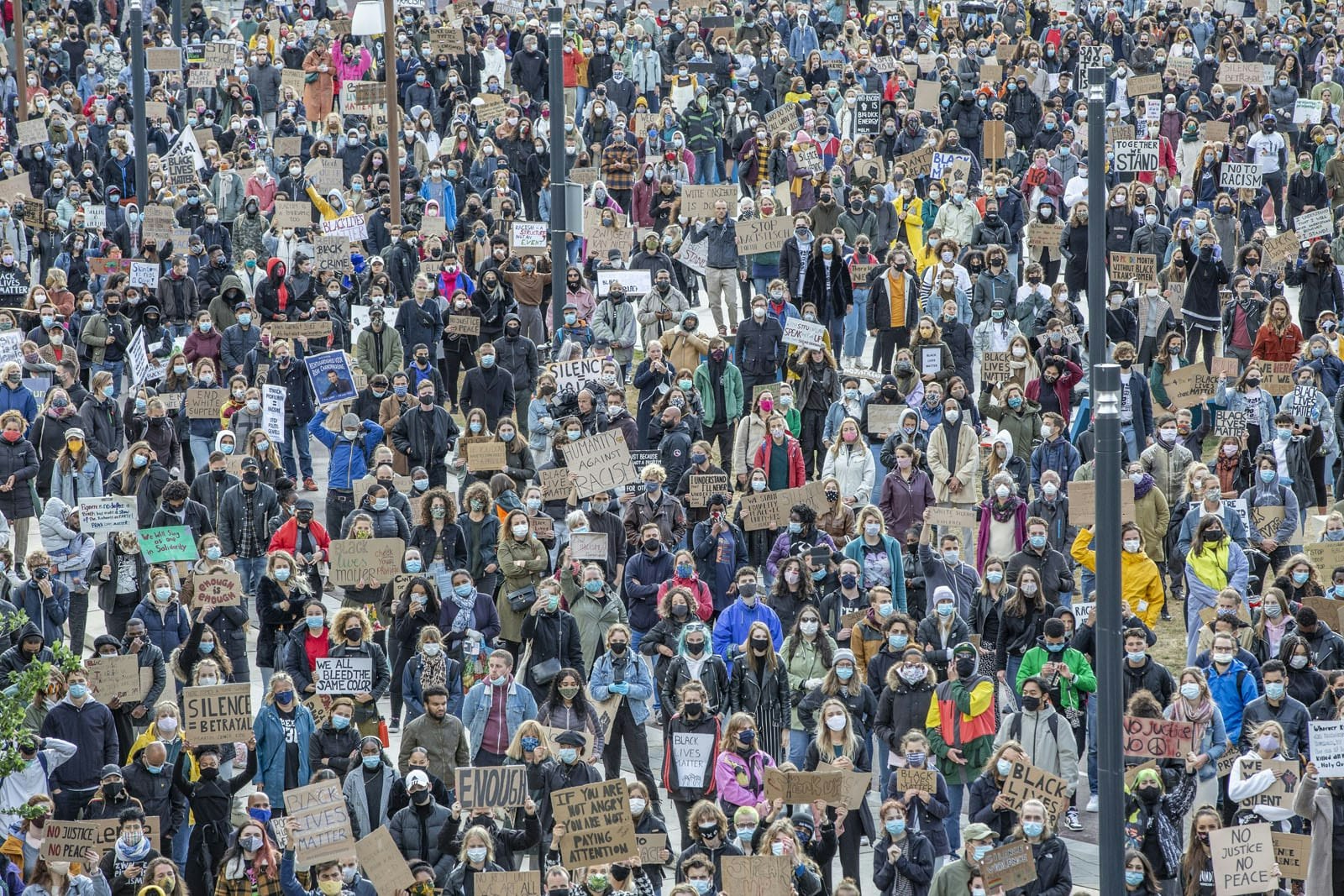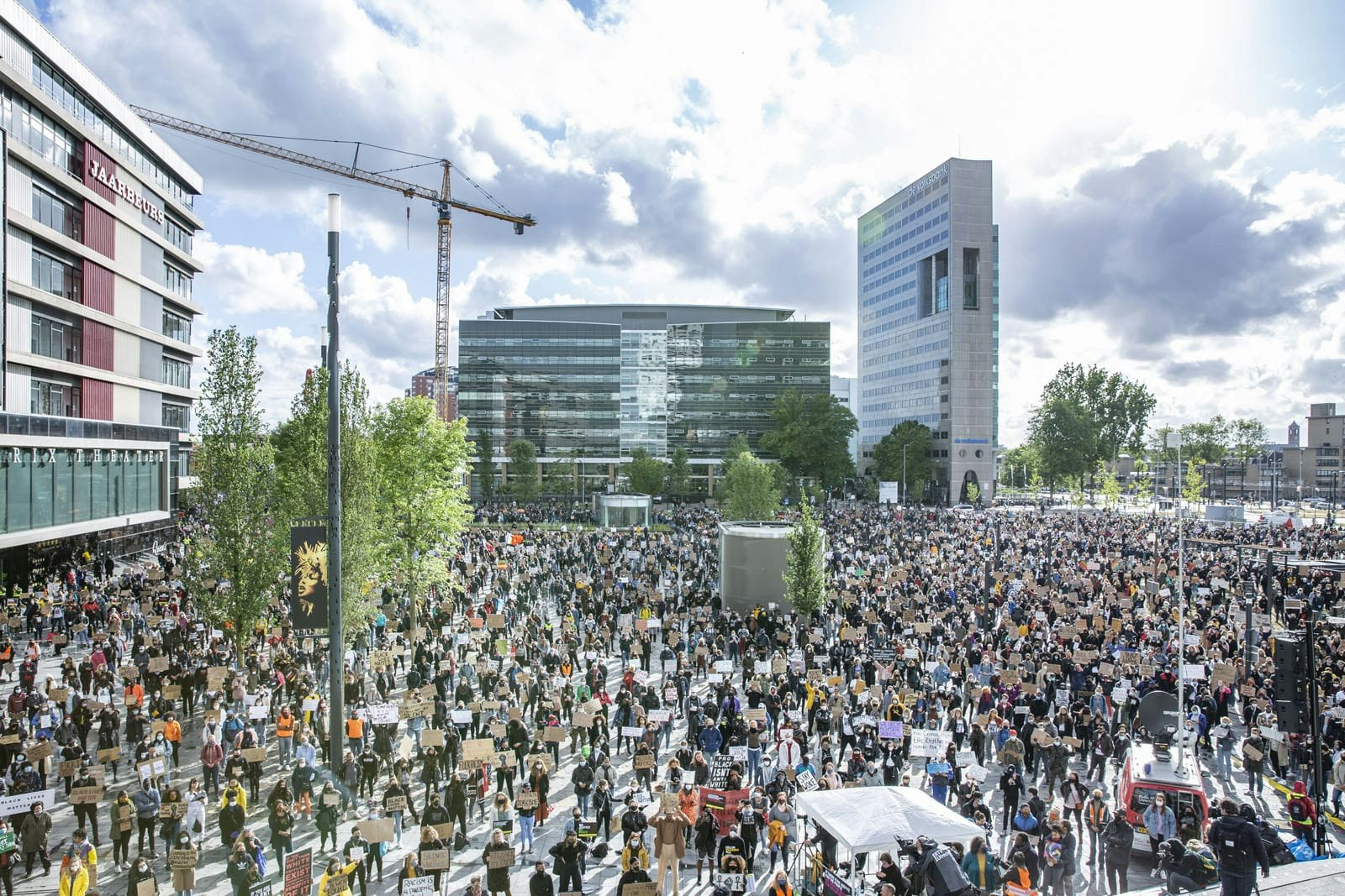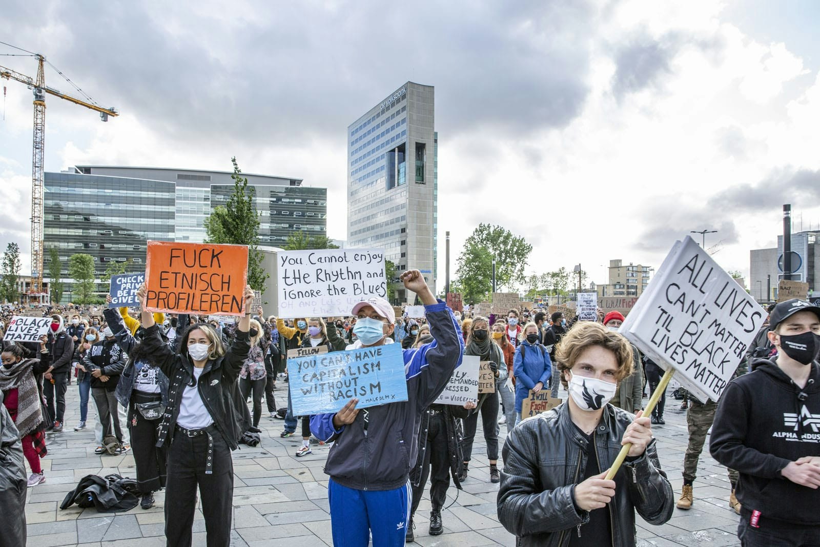 Ruim 3500 betogers kwamen vrijdagavond naar het Jaarbeursplein in Utrecht voor de de Black Lives…