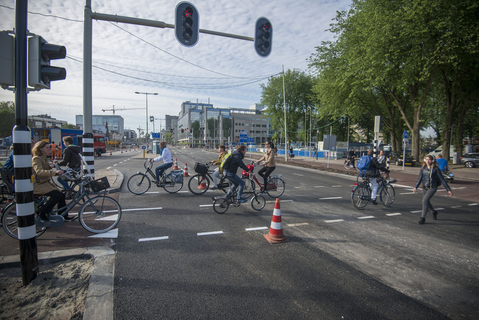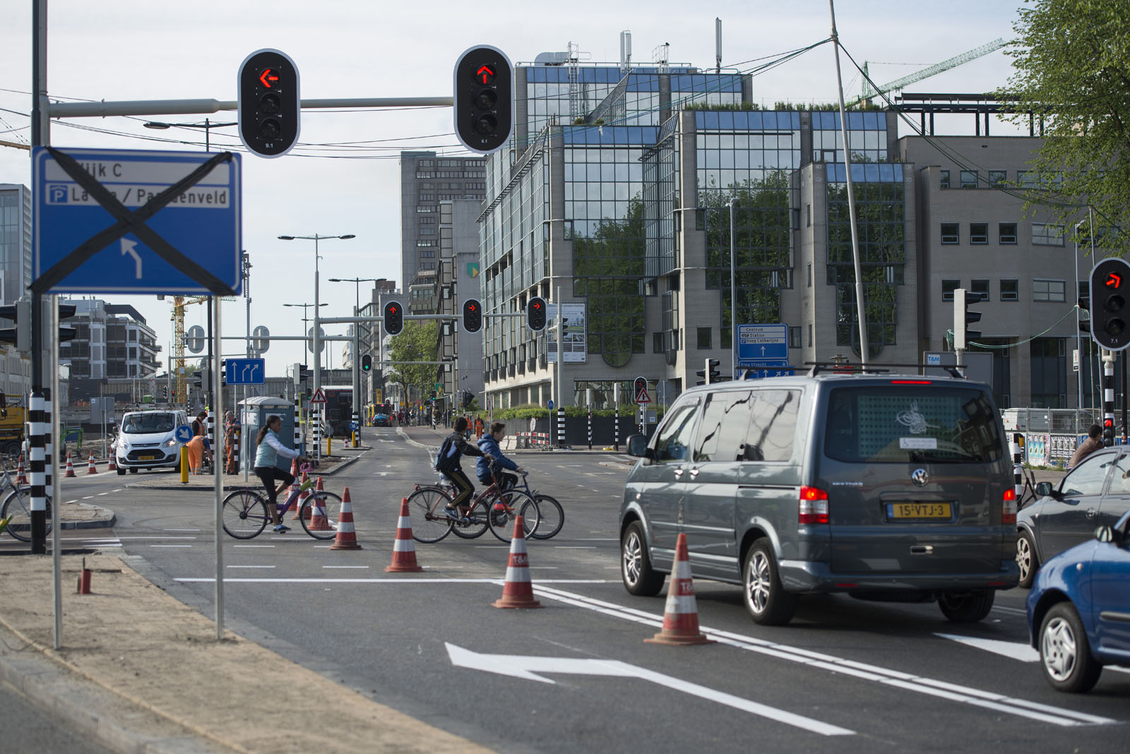 Voetgangers die over fietspaden over moeten steken, stoplichten die op rood blijven staan, kortom: de aannemer kan dan wel flink hebben doorgewerkt, maar de coördinatie ontbreekt.