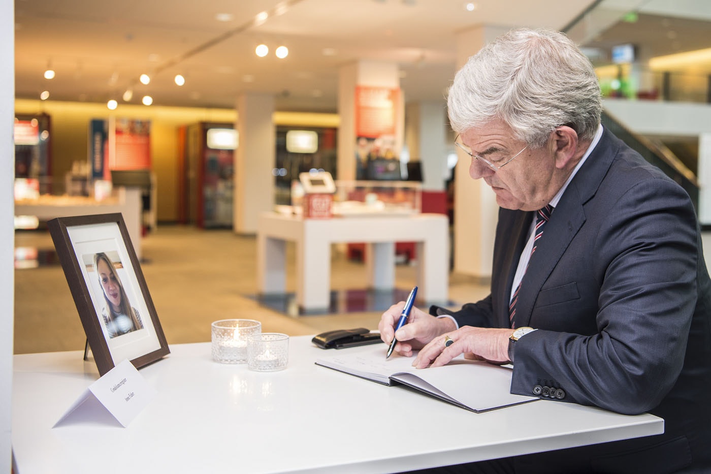 13-10-2017: Van Zanen tekent als eerste het condoleanceregister voor Anne Faber.