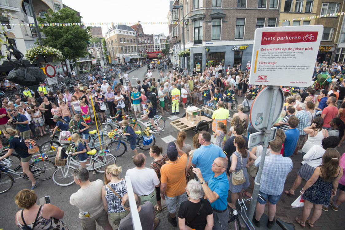 De carnavaleske optocht La Caravane d’Utrecht heeft voor een massale toeloop van toeschouwers gezorgd in het centrum van Utrecht. De stoet met allerlei creaties op de fiets begon in het Wilhelminapark en eindigde met een muzikale finale op het Vredenburgplein. Utrechters van jong tot oud deden met de optocht mee. Het was een feest.