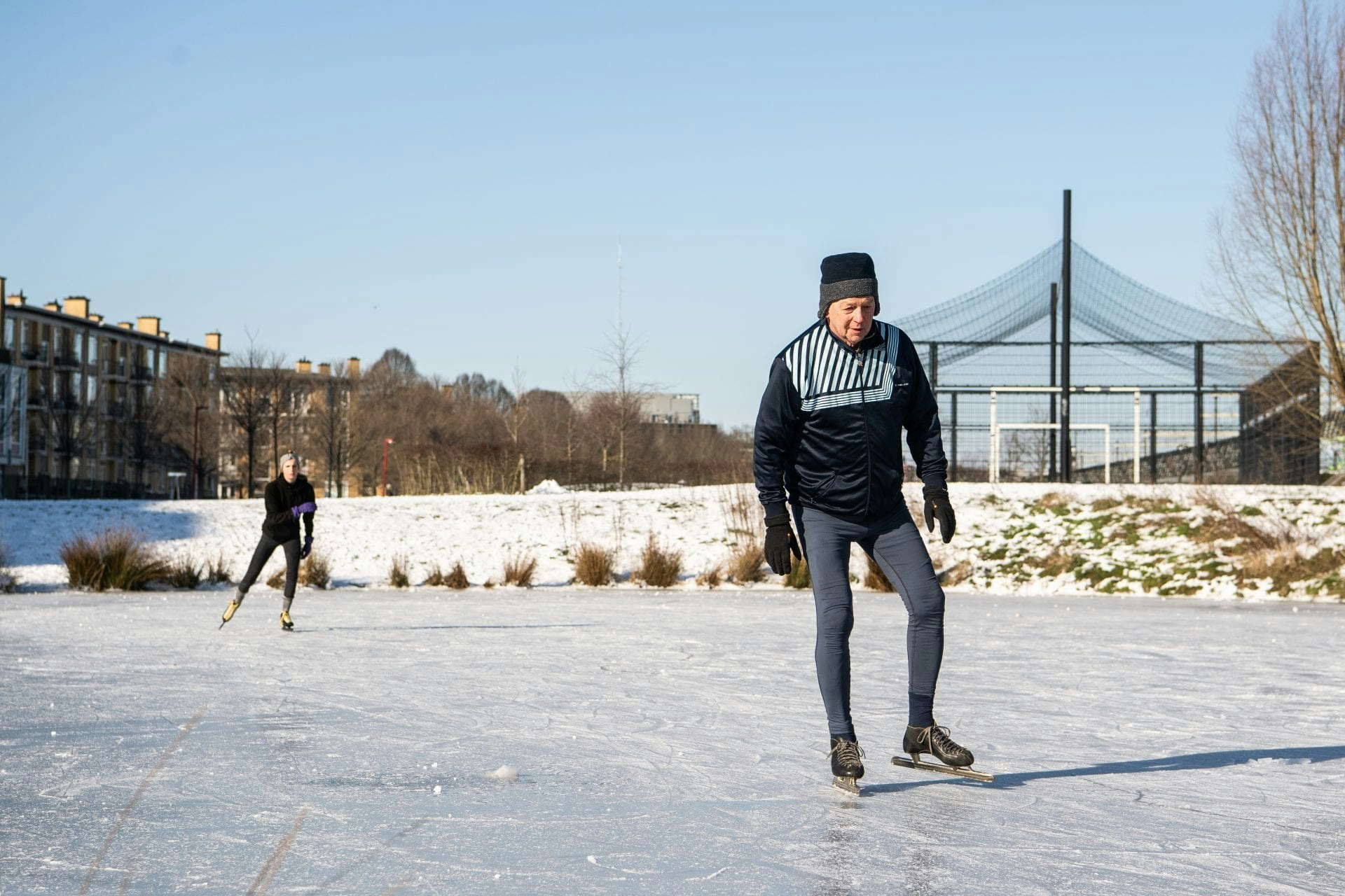 De 72-jarige Adrie Heijstek heeft jaren op hoog niveau geschaatst. De Utrechter deed zelfs mee met de Elfstedentocht, hij reed illegaal mee en heeft Willem Alexander nog even uit de wind gehouden. Donderdagochtend is hij te vinden op een vijvertje nabij het Tolsteegplantsoen.