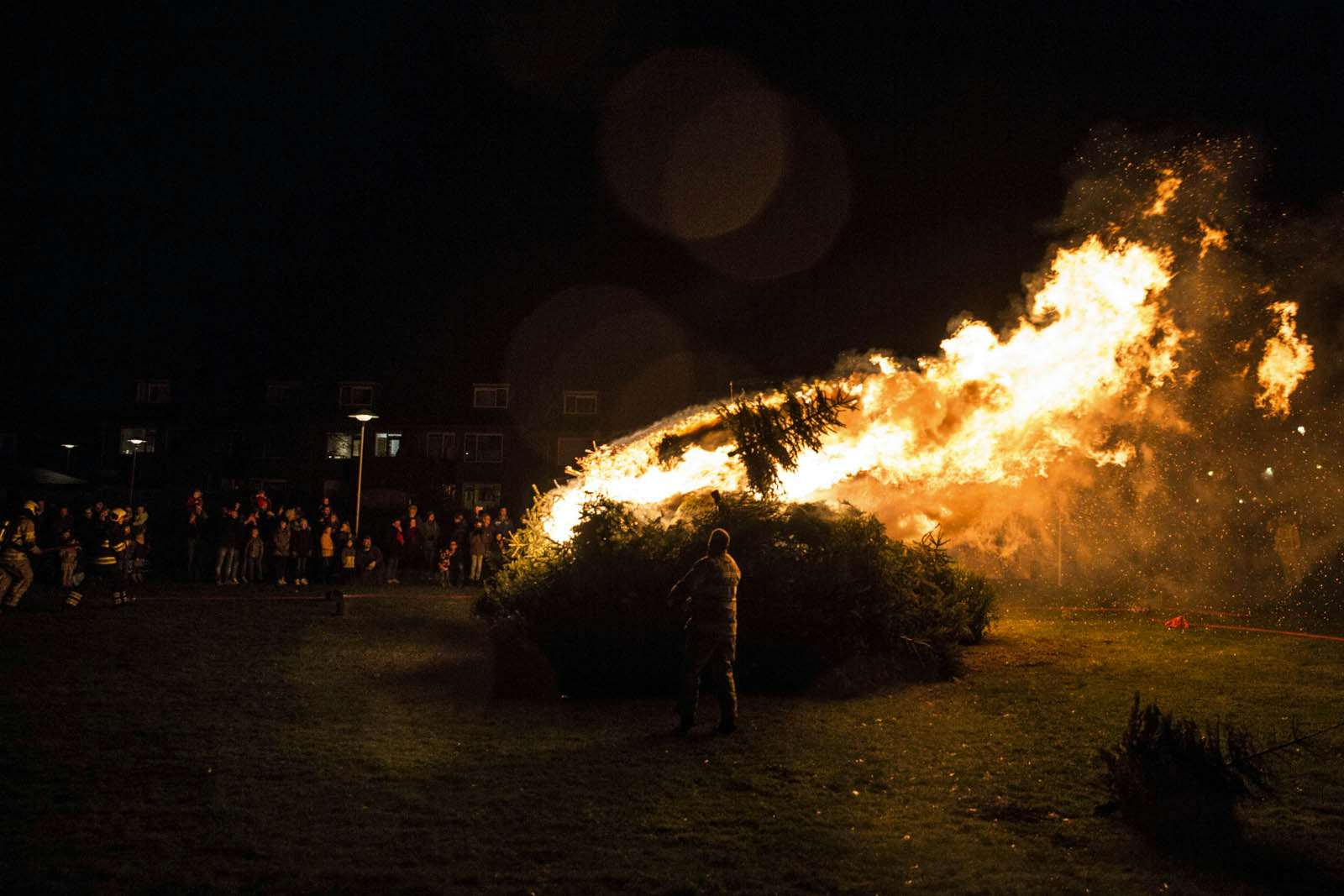De traditionele kerstboomverbranding in Zuilen trok weer veel bezoekers. Foto's: Bas van Setten / DUIC