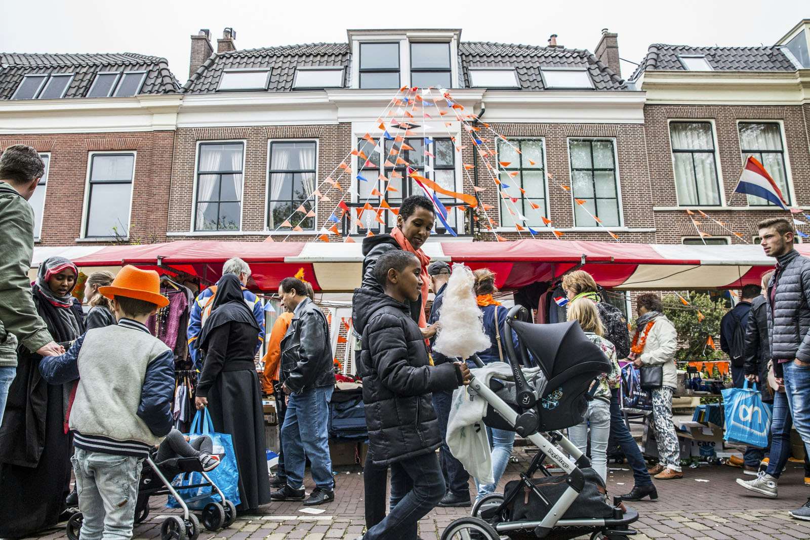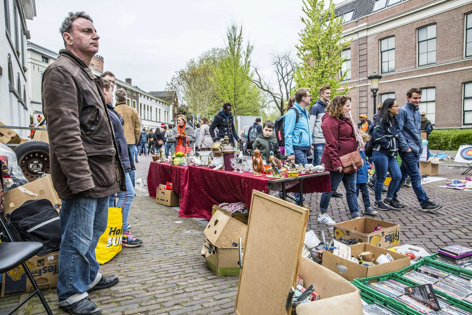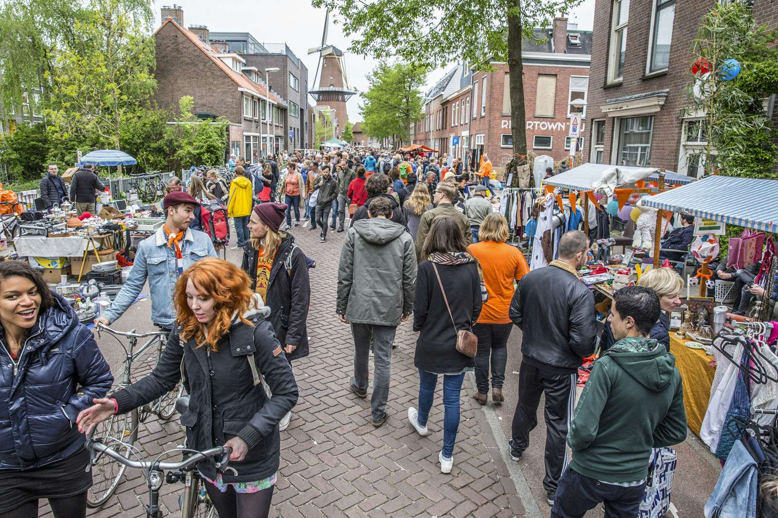 Bezoekers struinen langs de vrijmarkt op zoek naar koopjes of dansen op één van de vele openluchtfeesten. Net zoals gisteravond lijkt Koningsdag in Utrecht zonder grote incidenten te verlopen.
