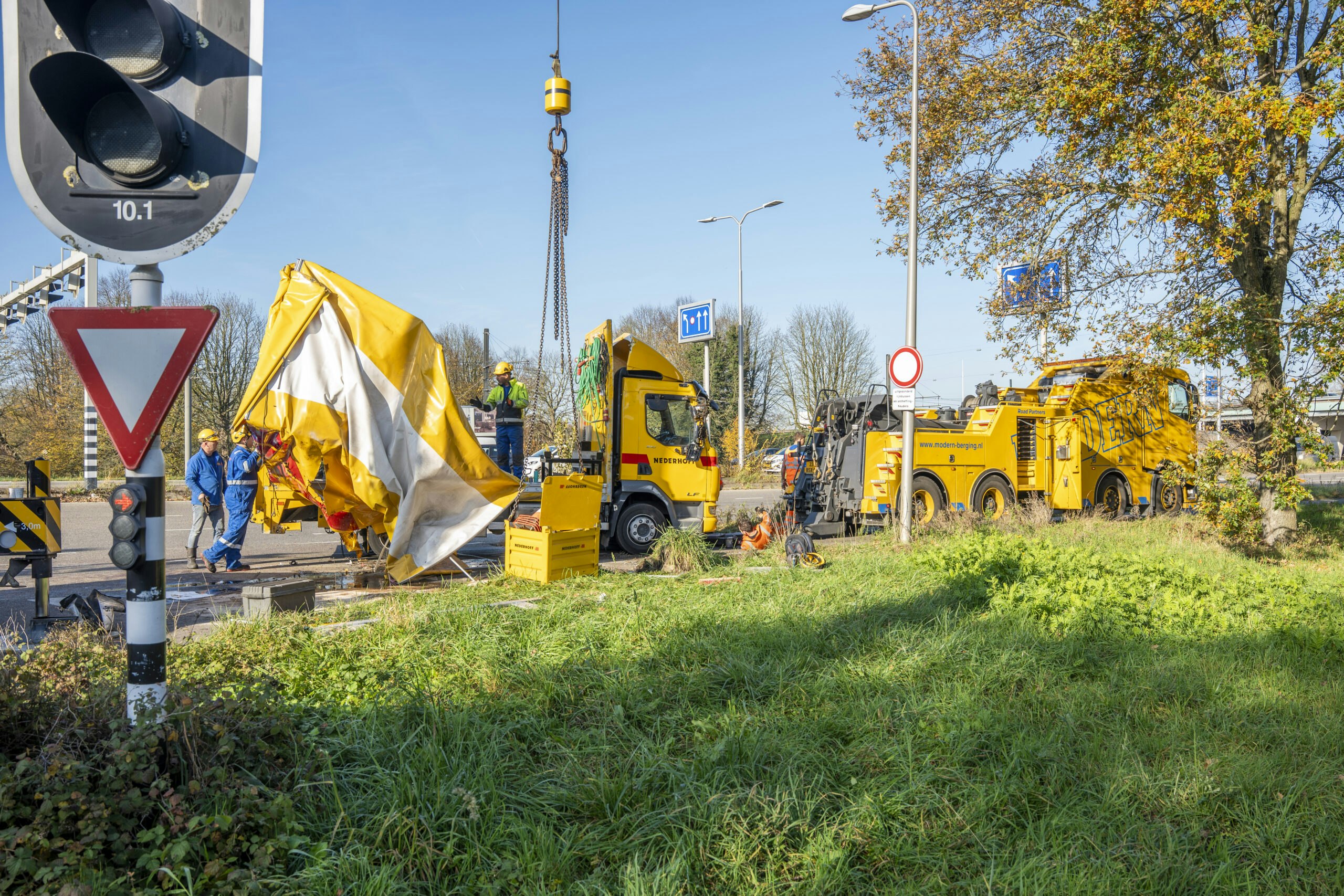 Bekijk hieronder hoe de vrachtwagen weer rechtop werd gezet: