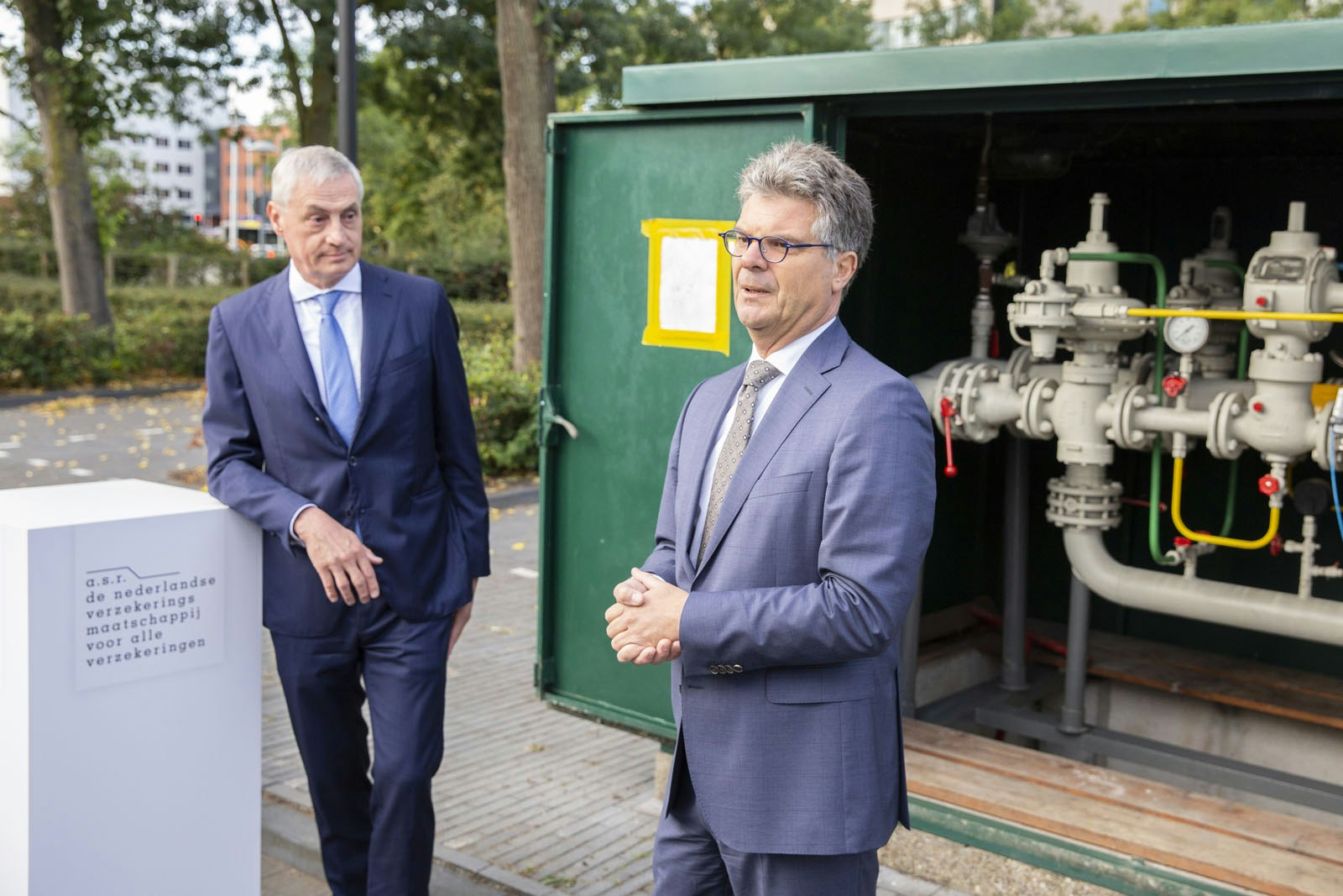 Bij het kantoor van verzekeringsmaatschappij a.s.r. aan de Archimedeslaan in Utrecht is donderdagochtend de gaskraan dichtgedraaid. Deze symbolische handeling werd uitgevoerd door commissaris van de koning Hans Oosters en CEO Jos Baeten.
