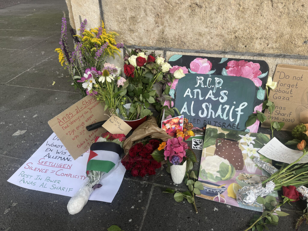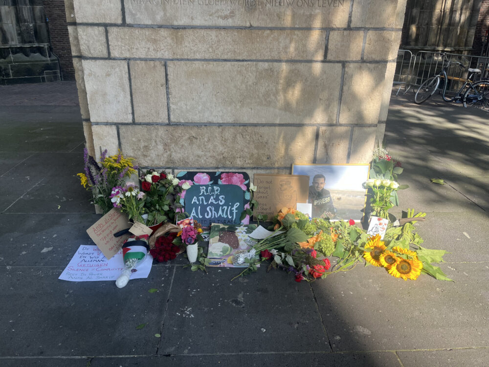 Bij het monument op het Domplein in Utrecht is een gedenkplek ingericht voor de omgekomen journalist Anas al-Sharif. De 28-jarige verslaggever van de tv-zender Al Jazeera kwam zondagavond om het leven bij een Israëlische aanval op een tent voor journalisten in Gaza-Stad.