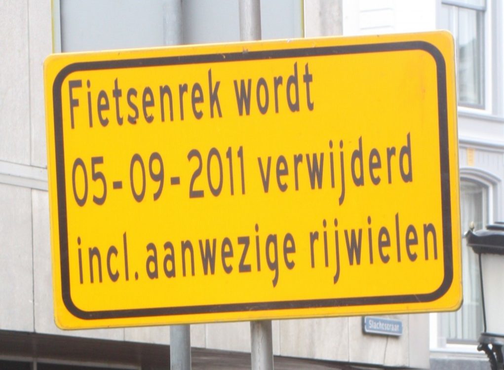 Tegelijkertijd start de gemeente vandaag voor de vijfde keer met een weesfietsactie in het stationsgebied. Alle fietsen in het oostelijk deel van het gebied worden komende week voorzien van een blauw label. Fietsen die na 28 dagen nog steeds een label hebben worden weggehaald. Sinds 2009 zijn er in het stationsgebied al ruim 4500 weesfietsen verwijderd. Meer informatie over deze actie is te vinden op de website www.utrecht.nl/fietsweg.