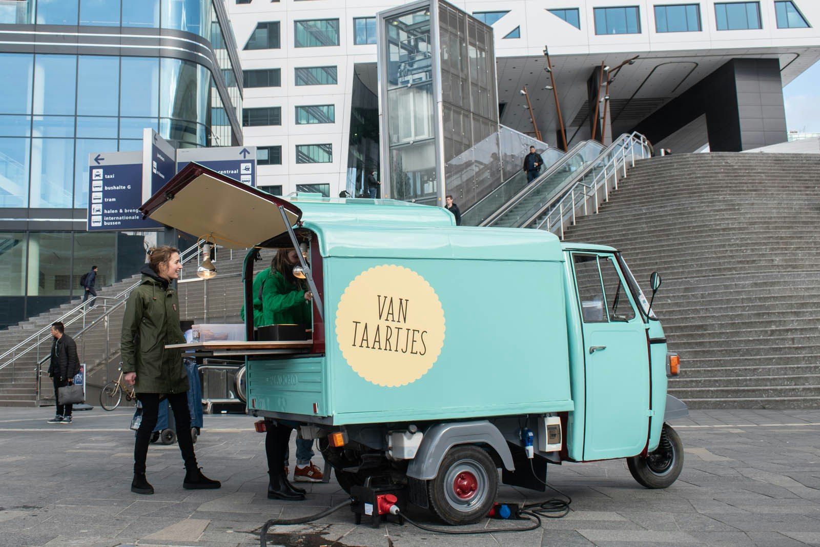 Vanaf afgelopen maandag staat op het Jaarbeursplein de foodtruck ‘Van Taartjes’ waar gezonde taartjes te koop zijn. Onderzoekers van de Universiteit Utrecht willen weten of reizigers bij station Utrecht Centraal de komende tijd zo te verleiden zijn om een gezonde snack te kopen.