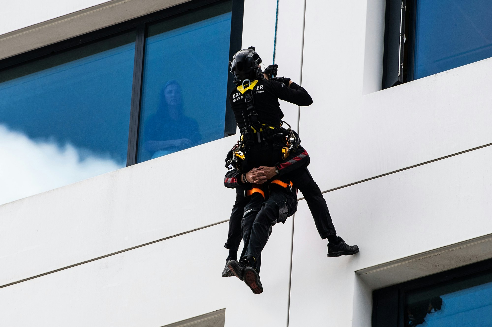 Waarom een brandweer en waarom hoogte reddings team? Bel gewoon een goede monteur! Er zijn meerdere specialisten op het gebied van gevelonderhoudsinstallaties. Deze mannen kunnen ook hulp verlenen bij het veilig bevrijden van glazenwassers en of gevelinspecteurs