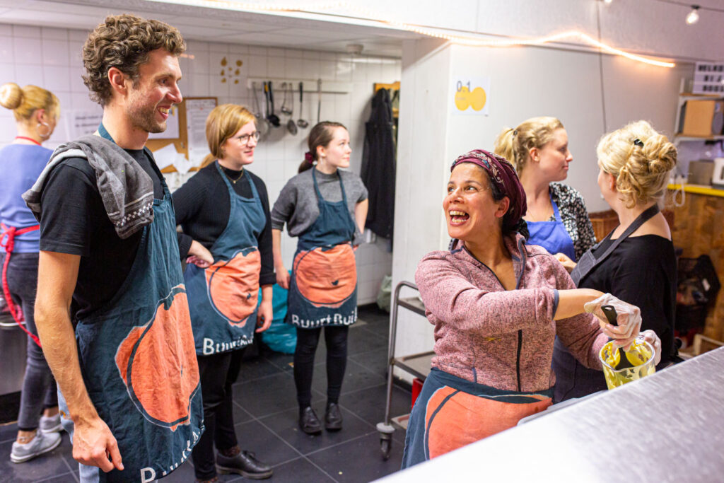 Eten ophalen bij lokale supermarkten, horeca en groenteboeren dat anders weggegooid zou worden en daar gratis maaltijden van maken voor de buurt? Dat doet BuurtBuik. Op zes plekken in Utrecht zetten vrijwilligers meerdere keren per week een gratis maaltijd op tafel. Iedereen is welkom om mee te eten.
