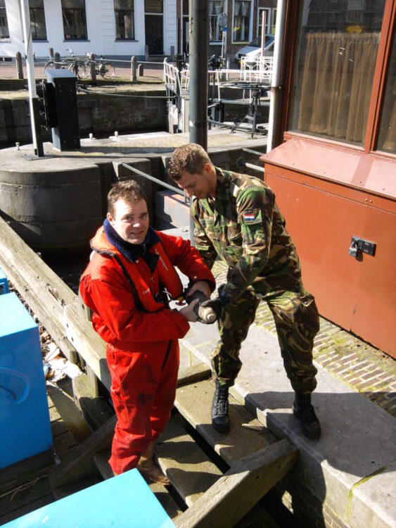 Patrick Gubbels was degene die de granaat uit het water viste. “Ik was fietsen aan het baggeren en ineens zag ik het voorwerp in de grijper zitten. Ik ben maar even een stukje verder gevaren, het leek me slimmer om niet midden in de stad te liggen. Daarna heb ik de Explosieven Opruimingsdienst gebeld. Of ik geschrokken ben? Nee hoor, ik vond het wel kicke.”