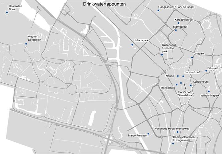 Dorst door de hitte? Gemeente Utrecht laat op een kaartje zien waar je gratis water kan tappen via de verschillende Join the Pipe watertappunten in de stad.
