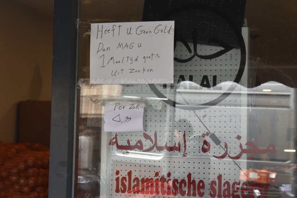 Utrechters die weinig tot geen geld hebben kunnen bij de levensmiddelenwinkel van Bader Dahhan (32) uit Syrië een gratis maaltijd krijgen. Op de winkel aan de Damstraat hangt sinds een half jaar een A4’tje met de tekst: “Heeft u geen geld dan mag u 1 maaltijd gratis uitzoeken.”