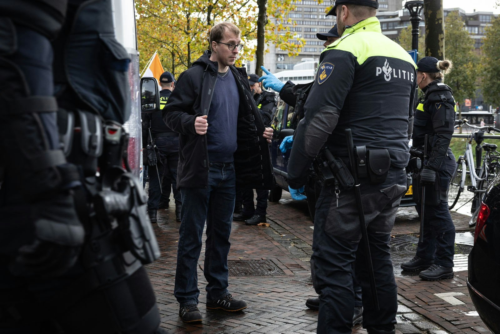 Op de Catharijnekade vlak voor het park werden ze allemaal één voor één gefouilleerd. Na ongeveer een uur besloten ze weer te vertrekken. Bij het vertrek werden de demonstranten opnieuw door agenten begeleid.