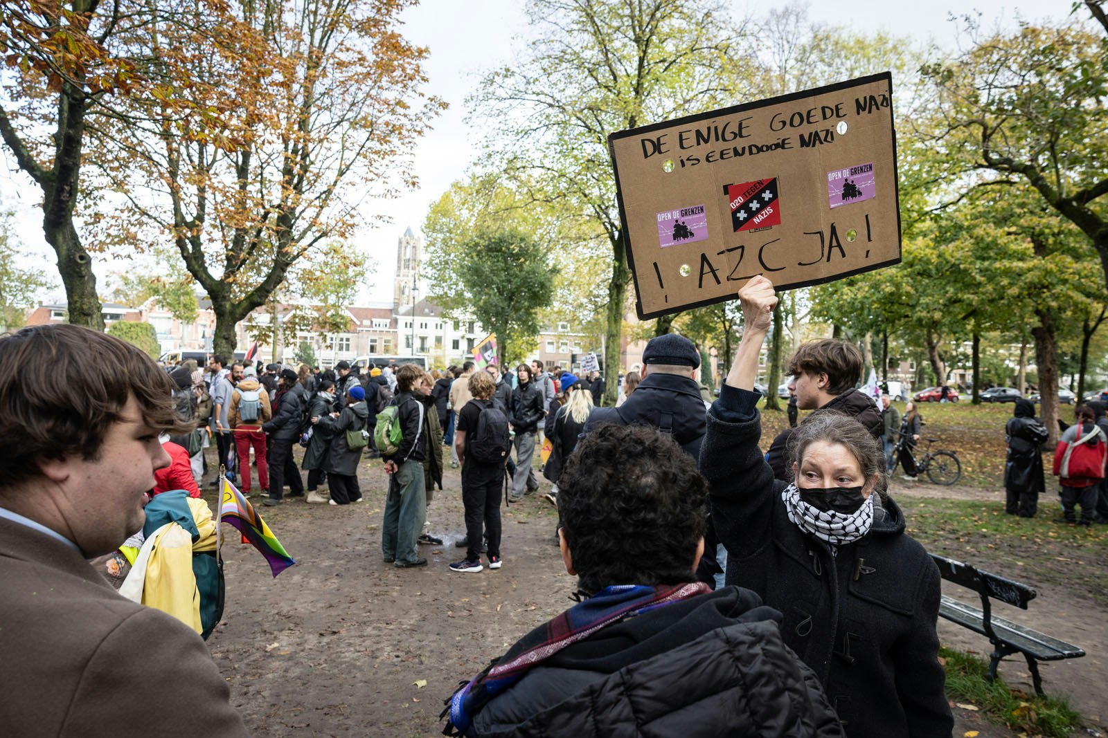 Iets verderop, in het Moreelsepark, was een tegengeluid te horen. Op deze plek stonden ongeveer honderd mensen.