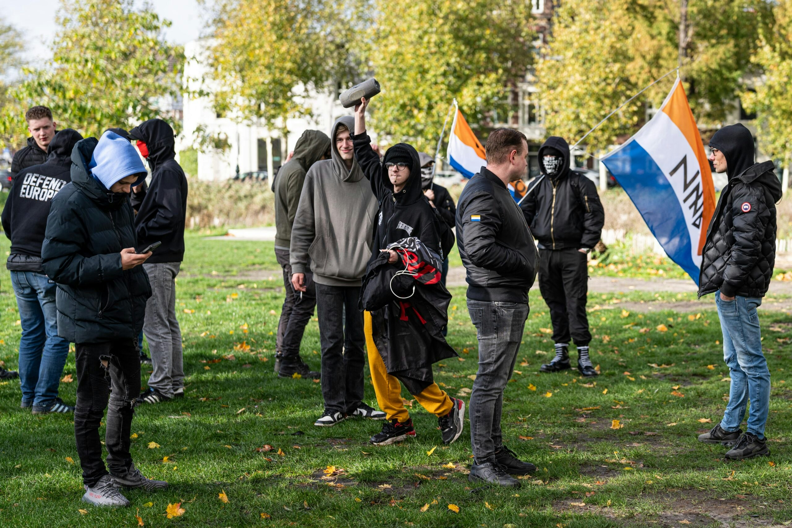 Extreem rechts: 30 mensen, met joints en alle teksten in het Engels. Dus dat is de cultuur die ze verdedigen: geen Nederlandse taal en openlijk drugs gebruiken. Wie neemt dit serieus?