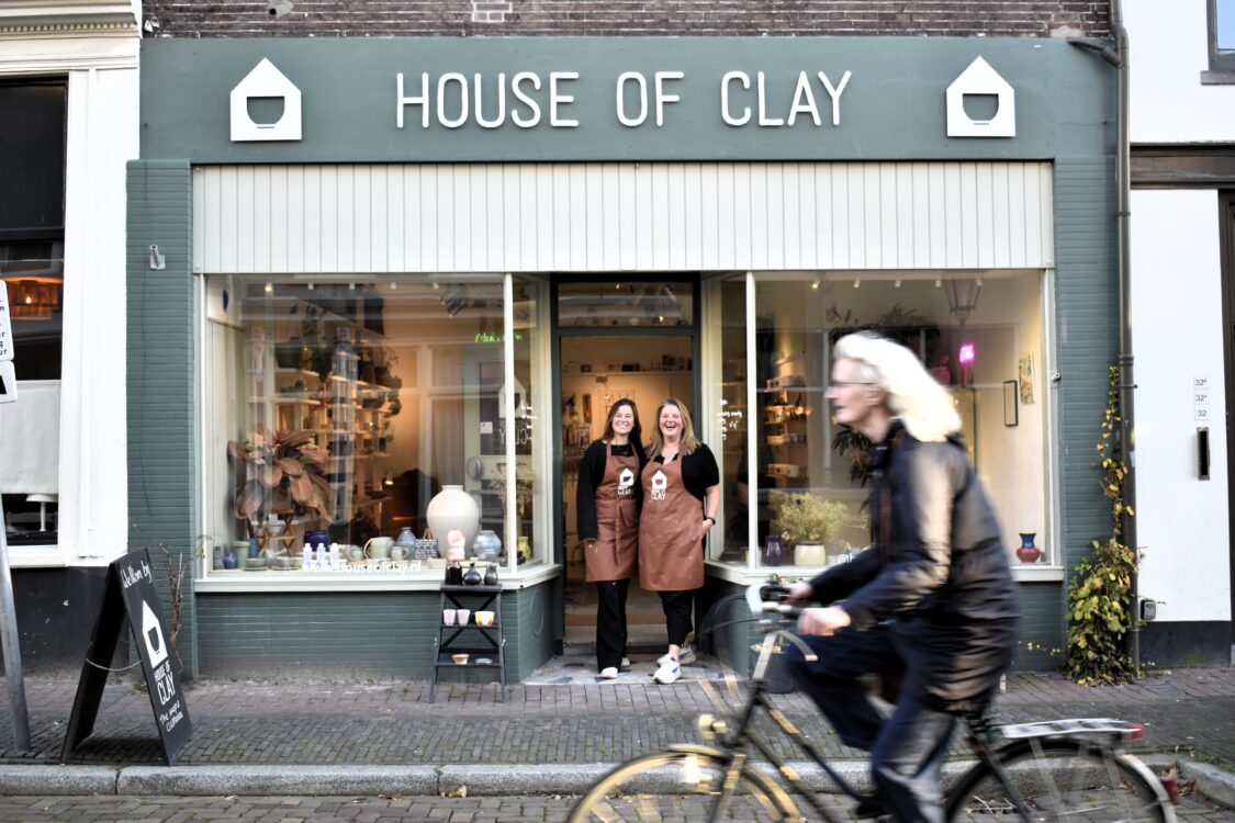 Vazen, borden, kopjes, mokken en allerlei ander keramiek — de etalage van House of Clay aan de Lange Smeestraat trekt de aandacht van menig voorbijganger. Ze blijven even staan en gluren nieuwsgierig naar binnen. De keramiekwinkel is niet wat het lijkt: het is ook een open atelier waar pottenbakkers lid van kunnen worden.
