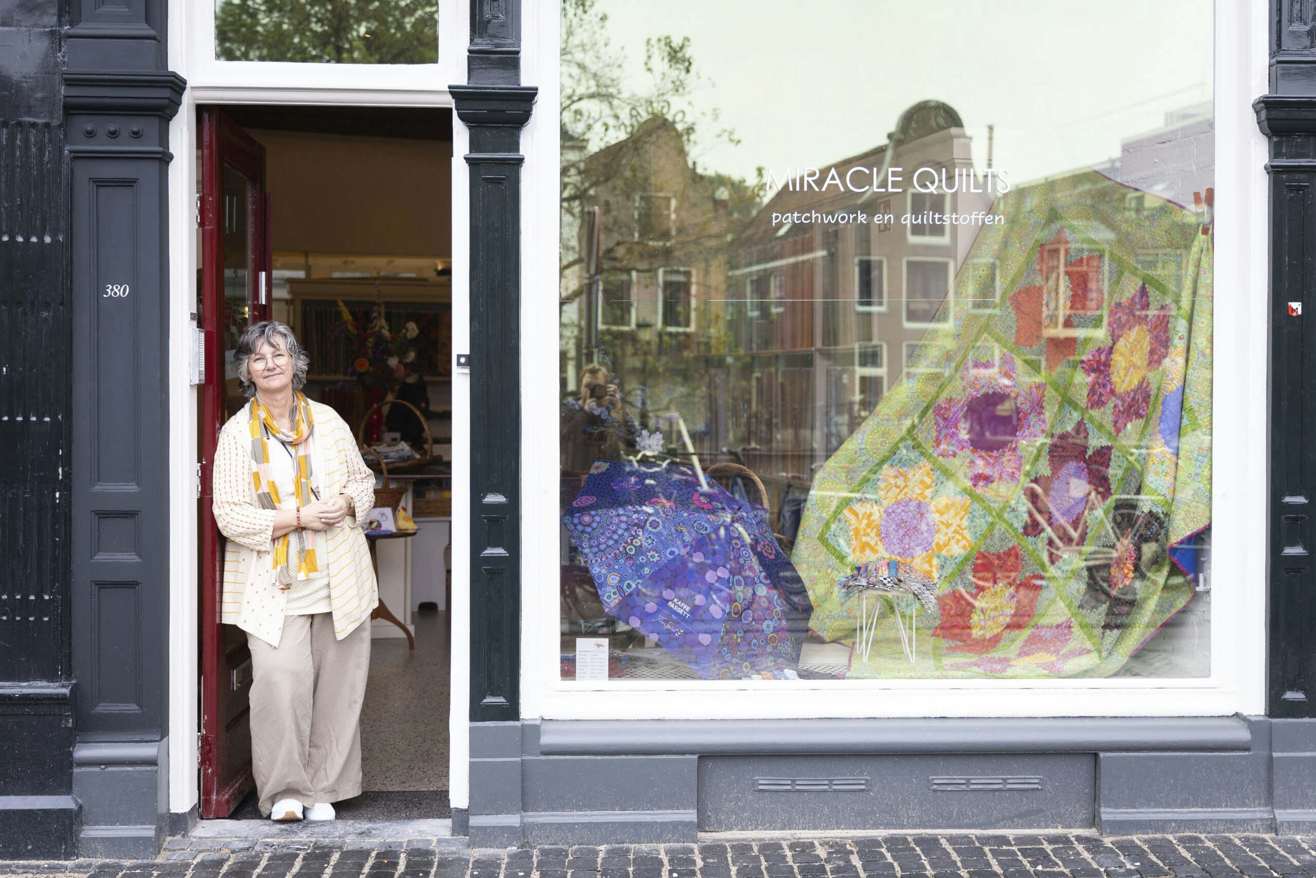 De kleurrijke etalage van Miracle Quilts trekt de aandacht van menig voorbijganger. Je hoort het ze soms denken terwijl ze door het raam naar binnen turen: wat voor winkel is dit precies? Ze zien onder andere een groot groen kleed met daarop bloemen in allerlei kleuren en een grote verscheidenheid aan stoffen. DUIC stapte de rode deur van het monumentale pand op de Oudegracht eens binnen.