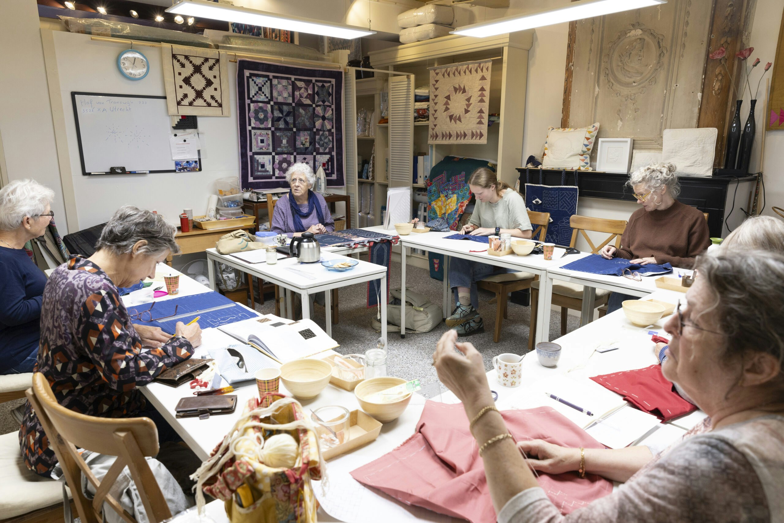 Miracle Quilts is een winkel, maar ook een plek waar allerlei cursussen worden gegeven over quilten en patchwork, maar ook over Sashiko. Dat is een eeuwenoude Japanse borduurmethode. Maria is nog steeds een van de docenten. In totaal zijn er 100 cursisten die om de week langskomen en aan de slag gaan in de ruimte achter in de winkel.