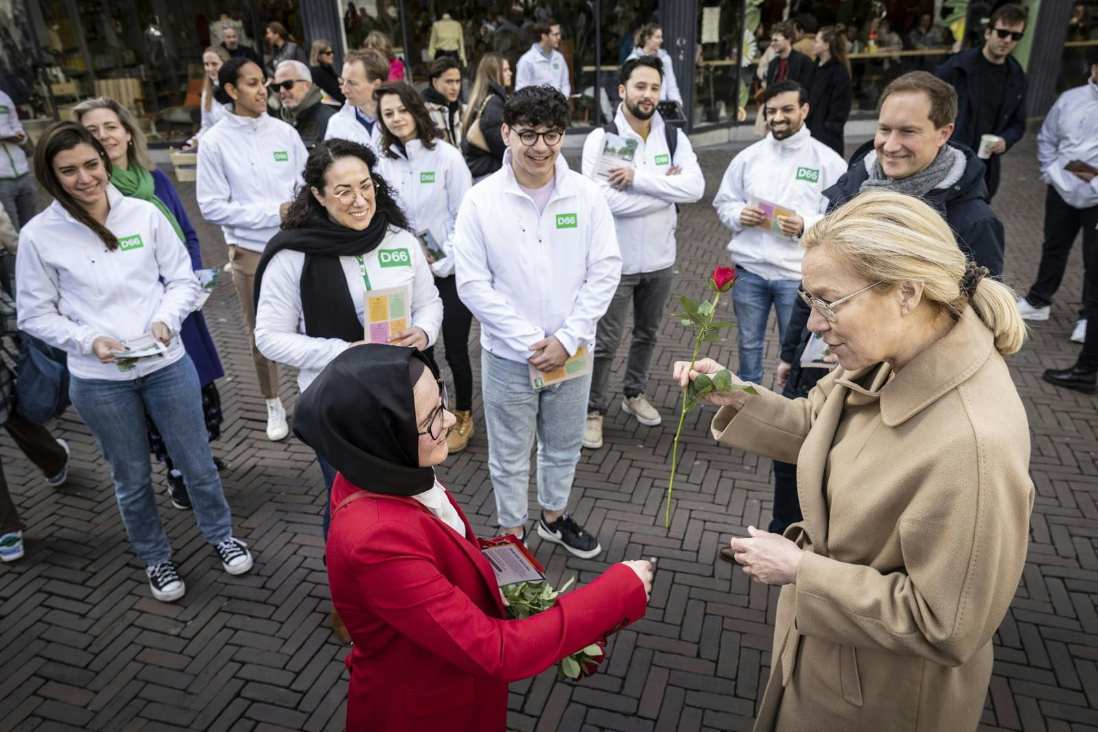 Daarnaast trok ook Ploumen door de stad. Zij sprak mensen aan, wees hen op het belang van stemmen en ook deelde zij rozen uit aan passanten. Ploumen werd hierbij vergezeld door een team van PvdA-leden.