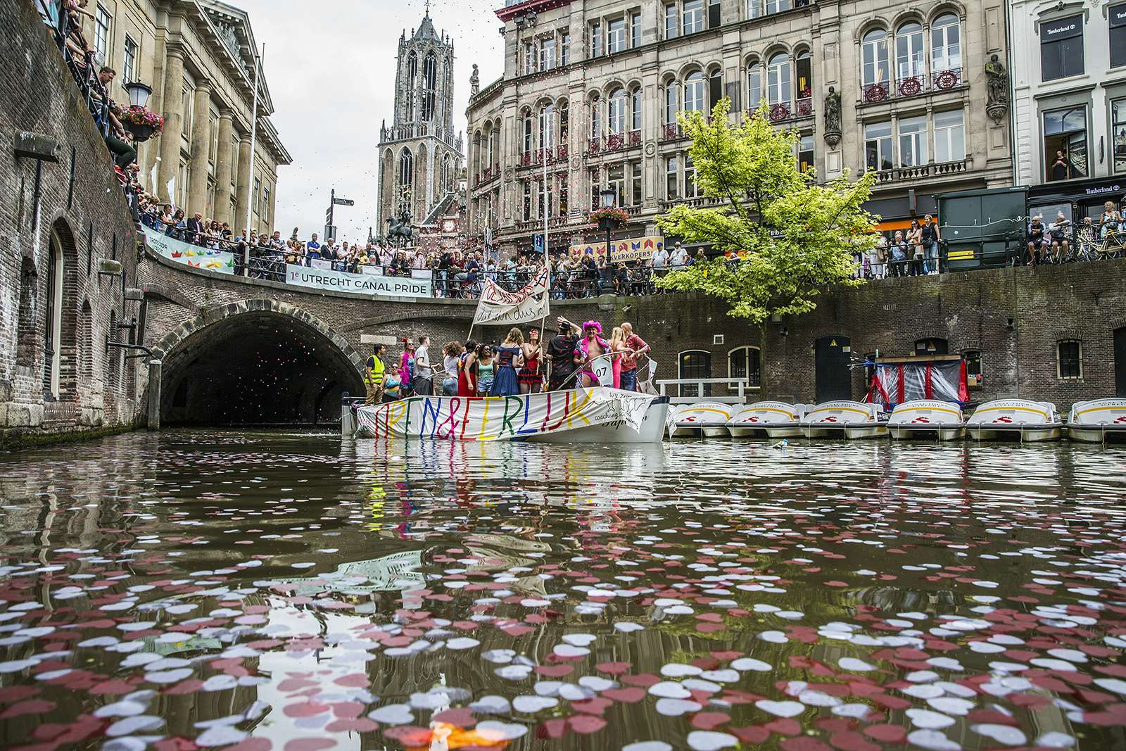 De eerste editie van de Canal Pride in Utrecht was een groot en kleurrijk feest. Door de grachten kwamen boten vol hossende, springende mannen, vrouwen en anderen voorbij. Voor de goede zaak welteverstaan, want voor organisator Robbert Kalff is het een serieuze aangelegenheid. De stad heeft het volgens hem omarmt en ja – daar kan hij emotioneel van worden.