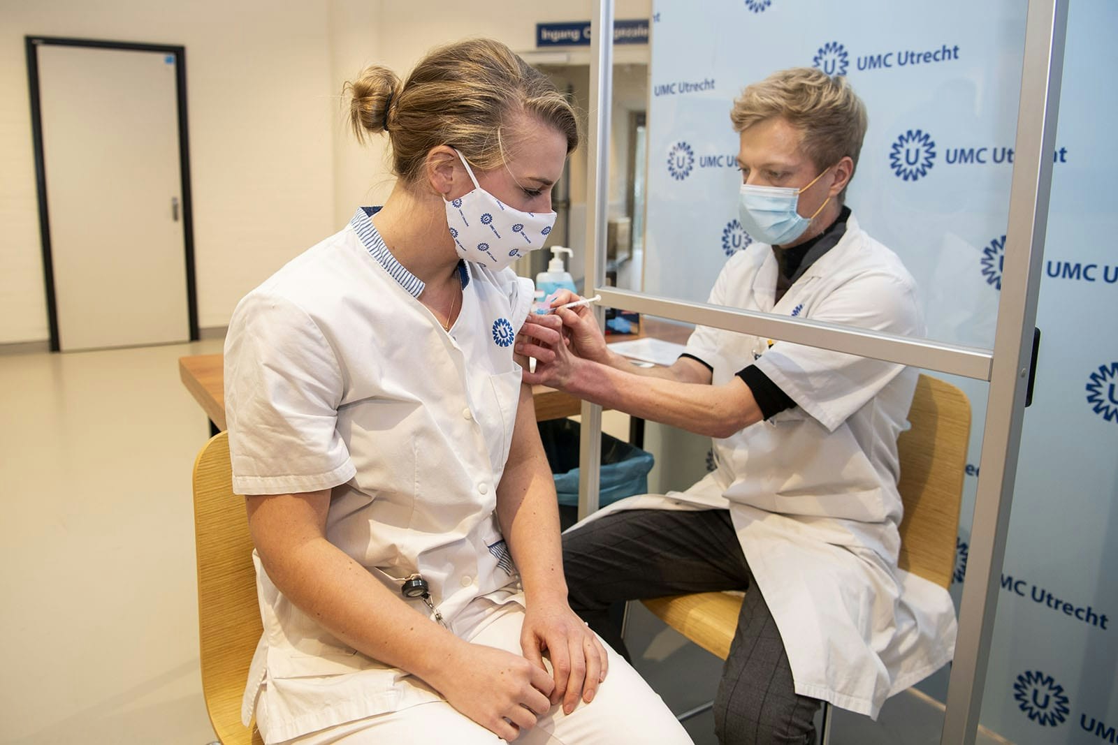 De eerste vaccinatie door de GGD in de regio werd op 8 januari gezet, in Houten. Twee dagen daarvoor was overigens de Utrechtse verpleegkundige Joy-Ann Duursma als allereerste in Utrecht gevaccineerd, maar dat gebeurde door zorgpersoneel onderling in het UMC en stond los van de gigantische vaccinatiecampagne die de GGD aan het optuigen was.