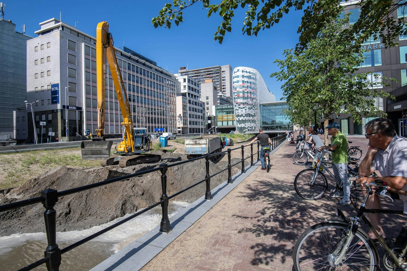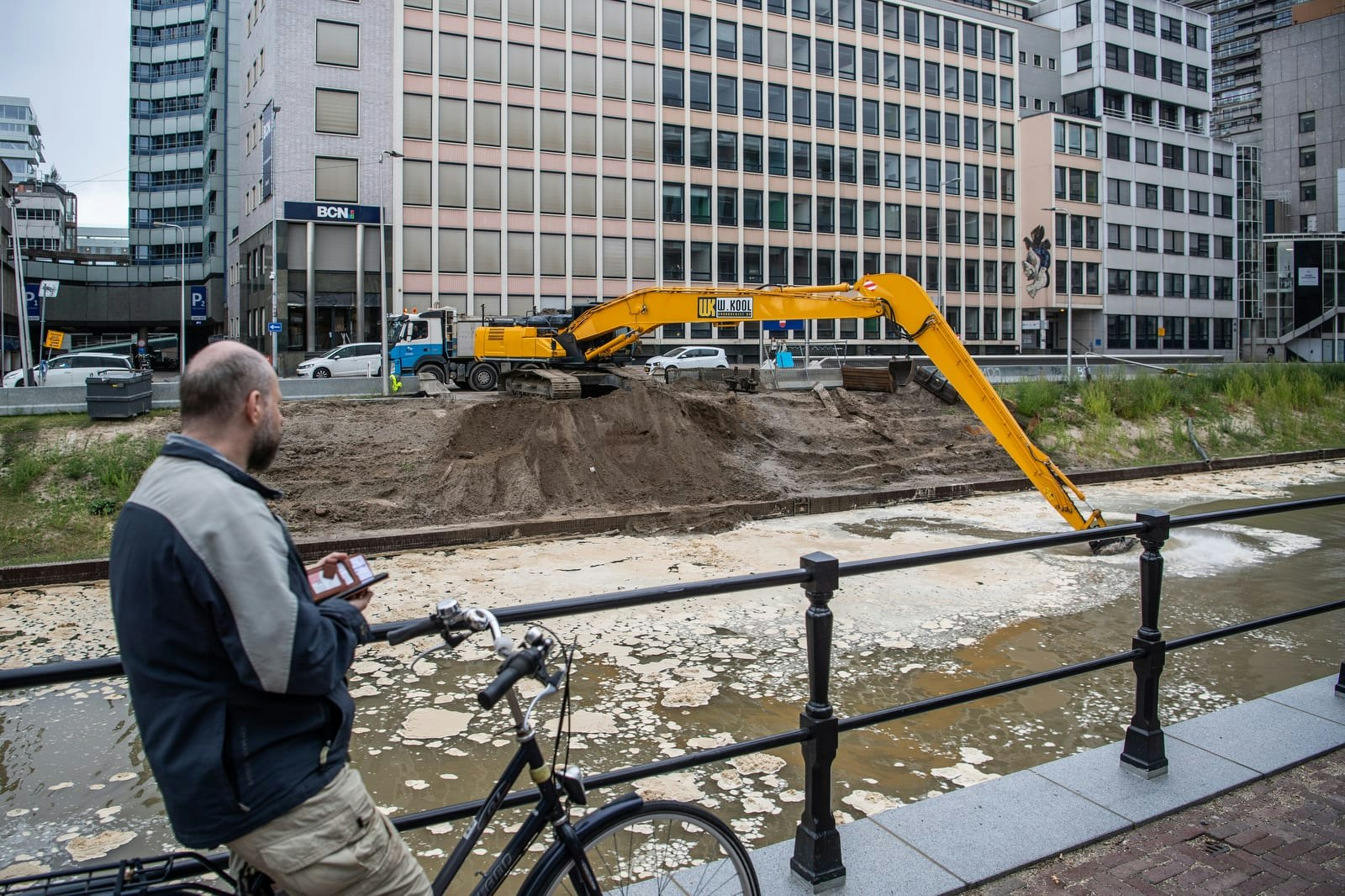 Er is jaren aan gewerkt, en nu is het slotstuk echt aangebroken. De laatste happen zand uit de singel in Utrecht worden weggehaald. Het water stroomt nu vrij onder Hoog Catharijne en de Marga Klompébrug door tot aan de bestaande singel. Daar staat nog een damwand die de laatste hobbel is.