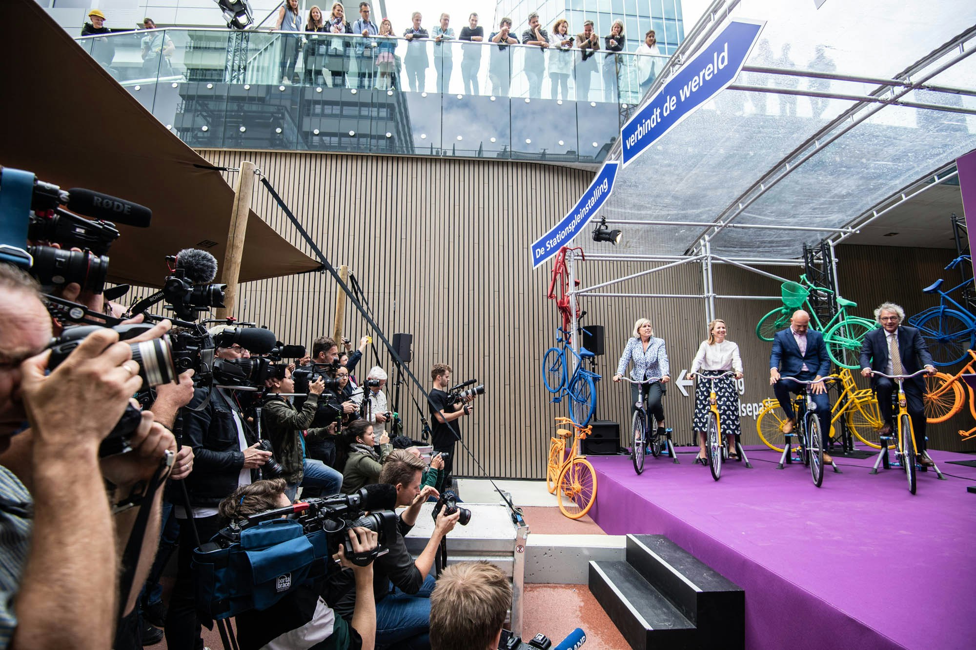 Utrecht heeft met 12.500 plekken de grootste fietsenstalling ter wereld. Terwijl tientallen aanwezigen toekeken, openden staatssecretaris Stientje van Veldhoven, wethouder Victor Everhardt, president-directeur NS Roger van Boxtel en directeur Projecten ProRail Ans Rietstra de stalling fietsend.
