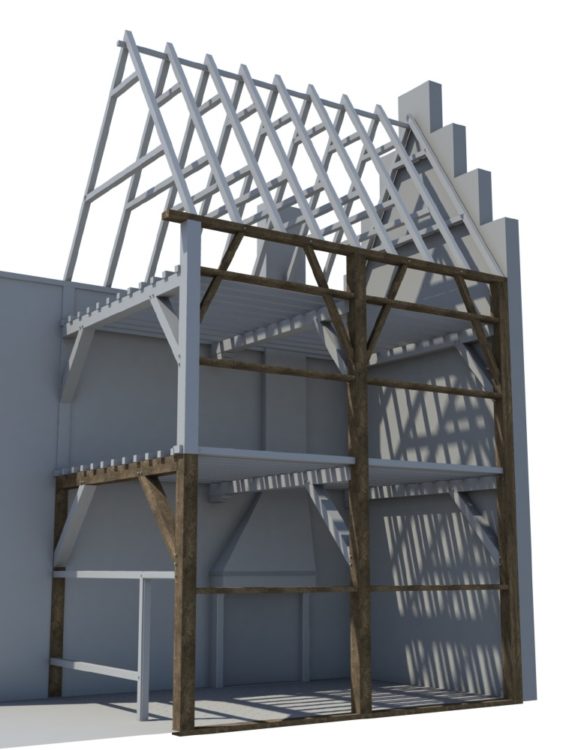 Tijdens verbouwingswerkzaamheden door de eigenaar Van Dinther Monumenten BV werden eind 2011 sporen van het vakwerk aangetroffen. Het Team Erfgoed van de gemeente Utrecht heeft deze sporen bouwhistorisch onderzocht en beschreven. De Rijksdienst voor het Cultureel Erfgoed heeft vervolgens met een nieuwe techniek de jaarringen van het hout onderzocht waarmee het hout gedateerd kan worden. Hieruit kwam een datering van het eikenhout tussen 1311 en 1315. De vondst is daarmee het de oudste bekende vakwerkconstructie van Utrecht en zelfs van Nederland, in een historische binnenstad. Het gaat om een deel van de zijgevel op de begane grond van het pand met een totaal oppervlak van zo’n 65 vierkante meter. De rechte en schuine houten balken en de stenen daar tussenin, typisch voor een vakwerkconstructie, zijn goed te zien. Het betreft een nog compleet aanwezige constructie in de achterkamer waar toentertijd het woonhuis gesitueerd was. De historische muur blijft vanaf nu zichtbaar in het pand. De begane grond staat nu leeg en heeft een winkelbestemming.