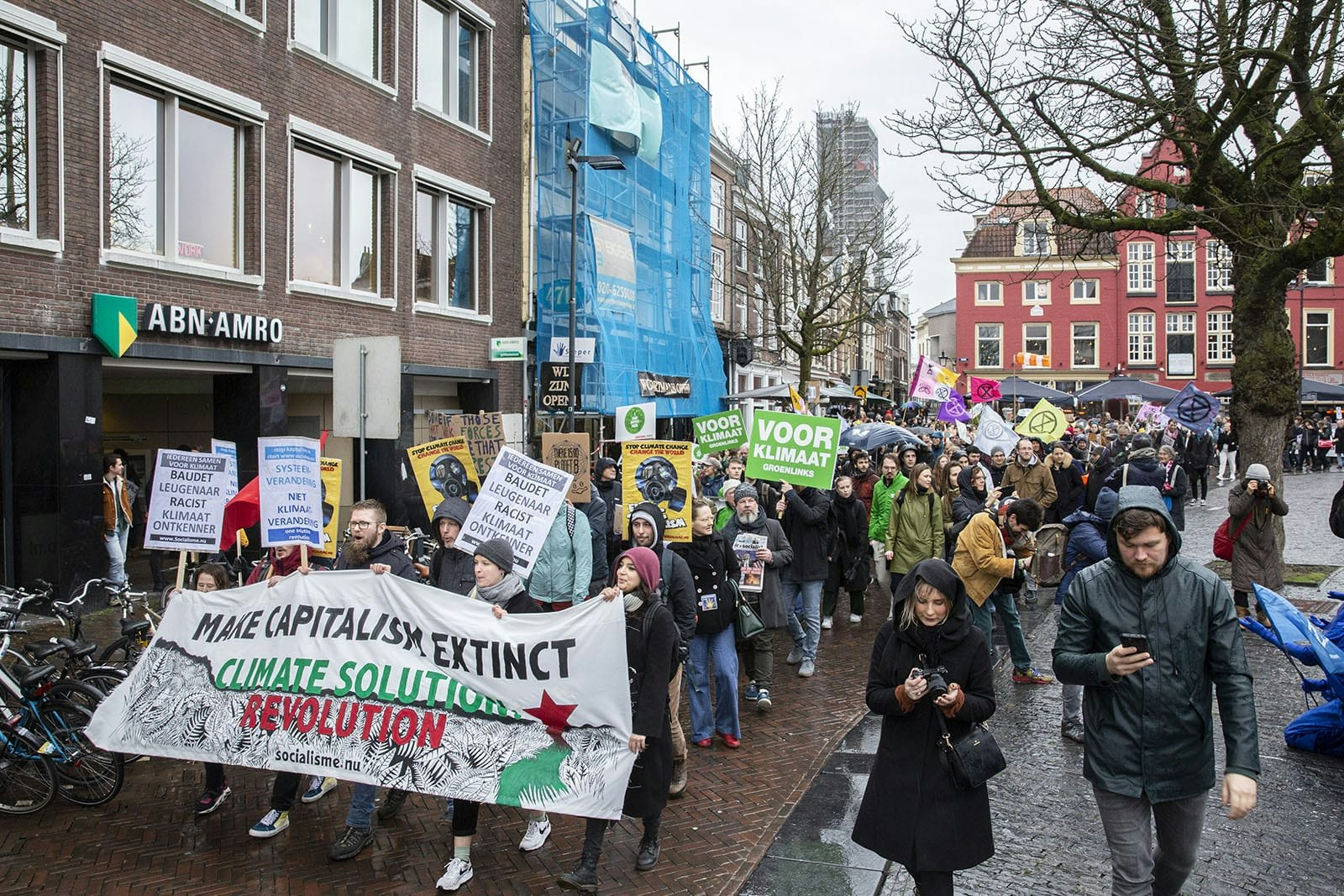 Honderden klimaatdemonstranten trokken zaterdag veel bekijks in de Utrechtse binnenstad. In een mars liepen ze van het Jaarbeursplein naar het Stadhuisplein en riepen de gemeente op tot actie.