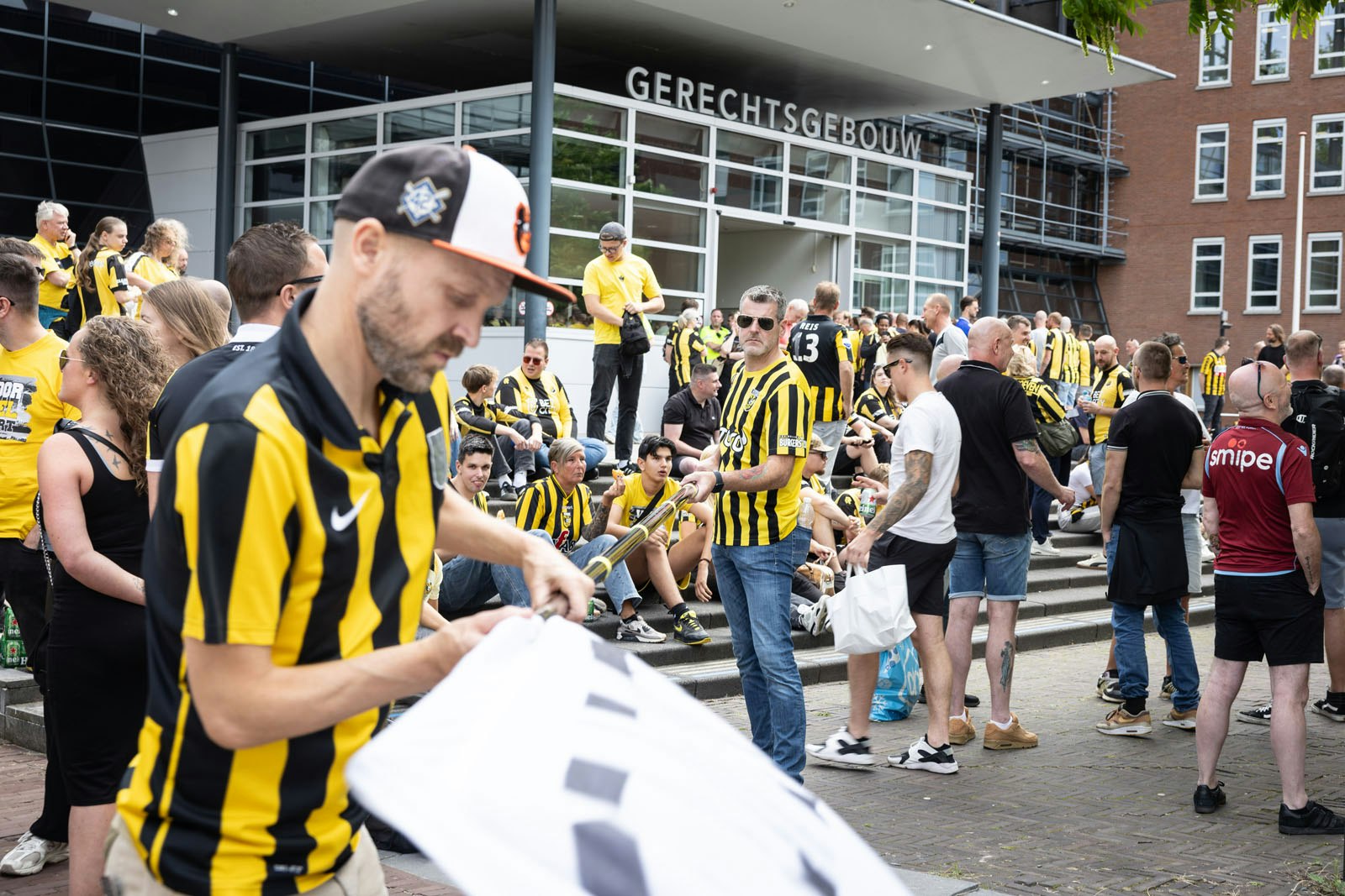 Donderdag wordt de zaak behandeld in de rechtbank Midden-Nederland aan het Vrouwe Justitiaplein in Utrecht. Om de club te steunen, hebben honderden Vitesse-supporters zich verzameld voor de ingang van de rechtbank. Een klein deel kon naar binnen om de zaak bij te wonen.
