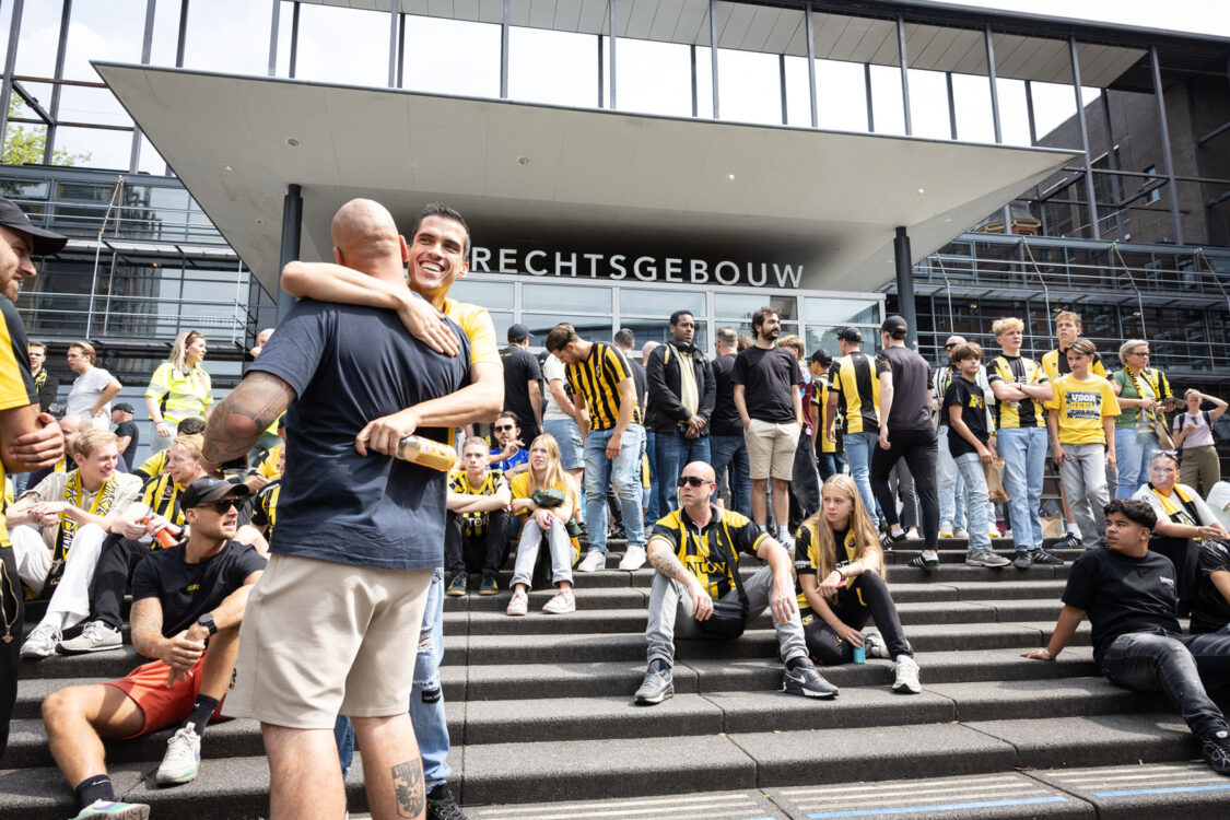 Donderdag wordt de zaak behandeld in de rechtbank Midden-Nederland aan het Vrouwe Justitiaplein in Utrecht. Om de club te steunen, hebben honderden Vitesse-supporters zich verzameld voor de ingang van de rechtbank. Een klein deel kon naar binnen om de zaak bij te wonen.