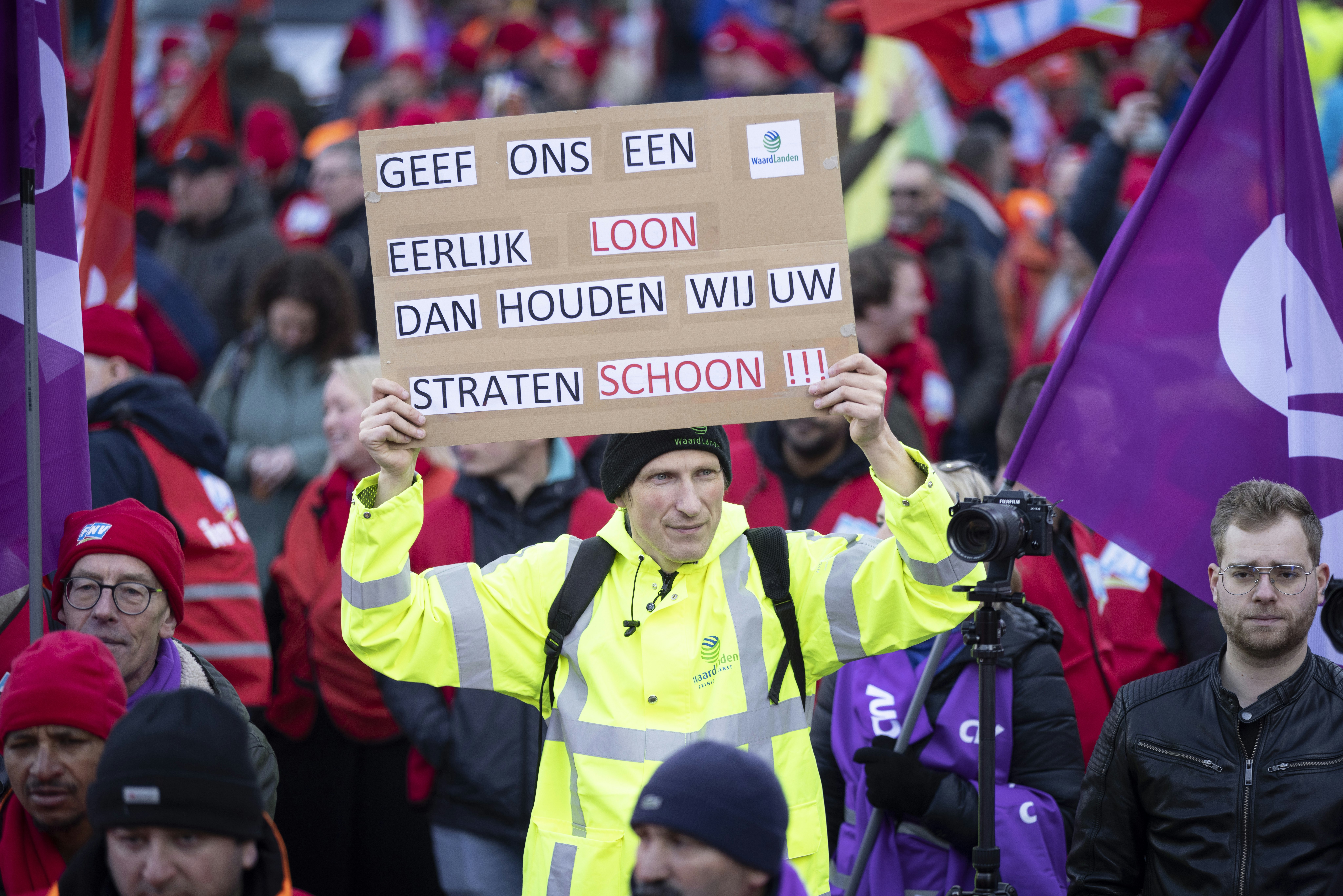 De vakbonden en de VNG (de werkgever van alle vuilnismannen- en vrouwen) zijn tot nu toe nog niet tot een akkoord gekomen. De vakbonden eisen onder andere een structurele loonsverhoging van 12 procent, maar de werkgever bood zo’n 4 procent. “We eisen wat we verdienen”, aldus Manschot. Heerts beloofde met een nieuw bod te komen: “En dat zal geen weken op zich laten wachten.”