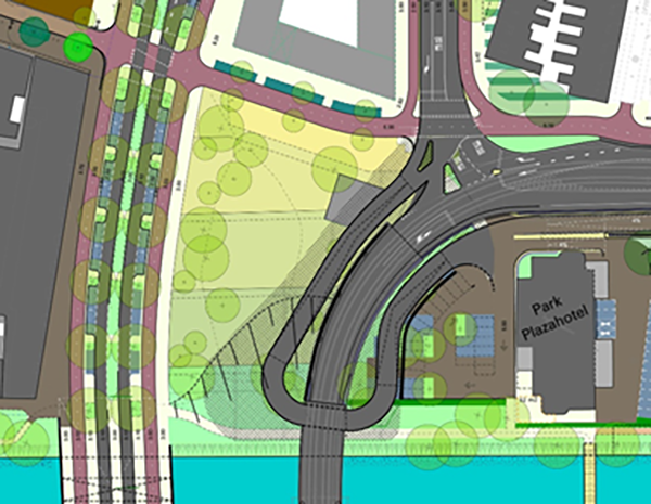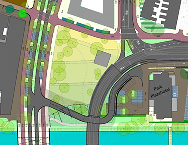 Bijkomend voordeel is dat het Park Plaza een mooie groene buitenruimte kan creeren ipv een parkeerplaats. Dat sluit mooi aan op het beoogde park buiten de trambaan.