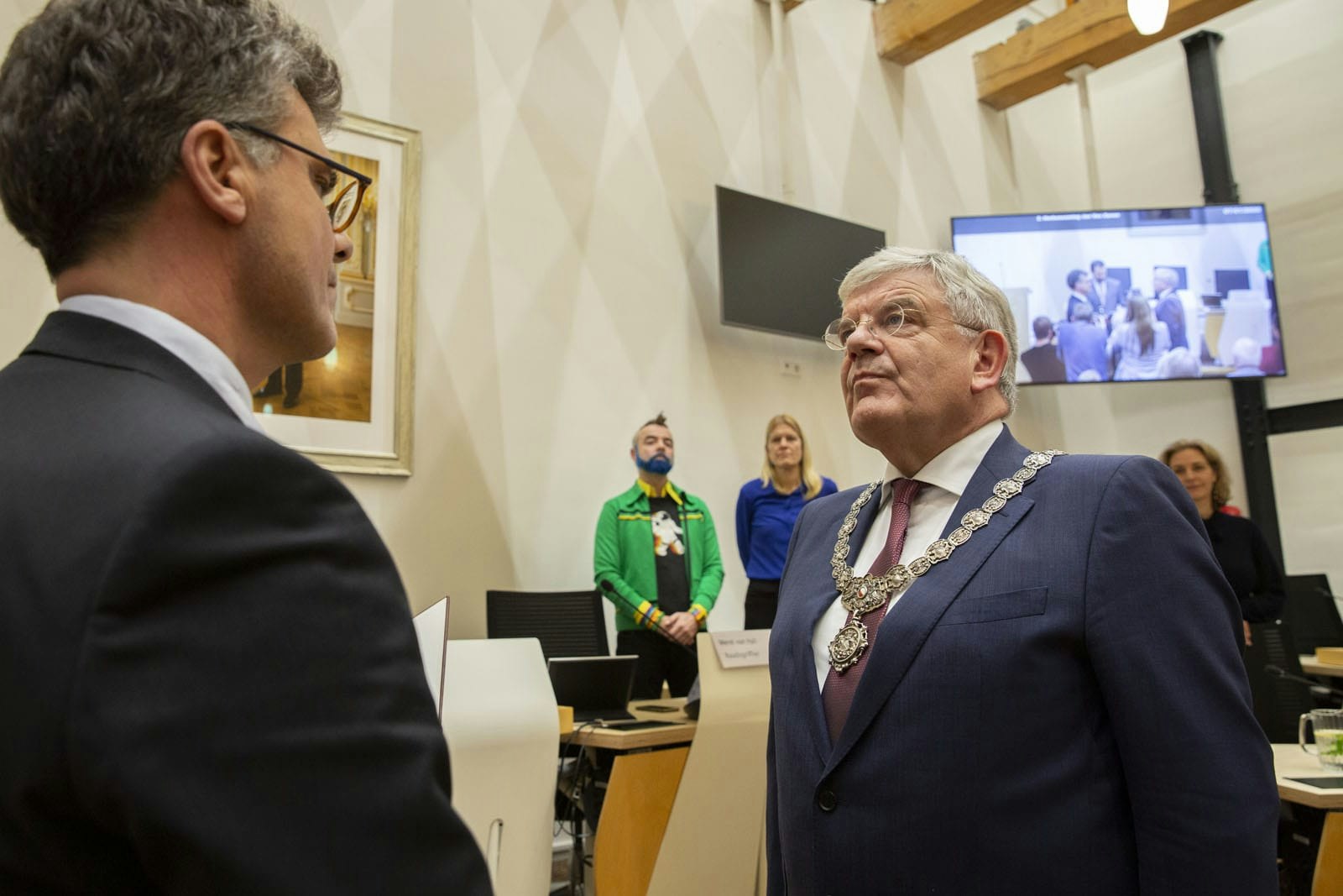 Jan van Zanen is dinsdagavond officieel herbenoemd als burgemeester van Utrecht. Dit gebeurde in een afgeladen raadszaal van het stadhuis.