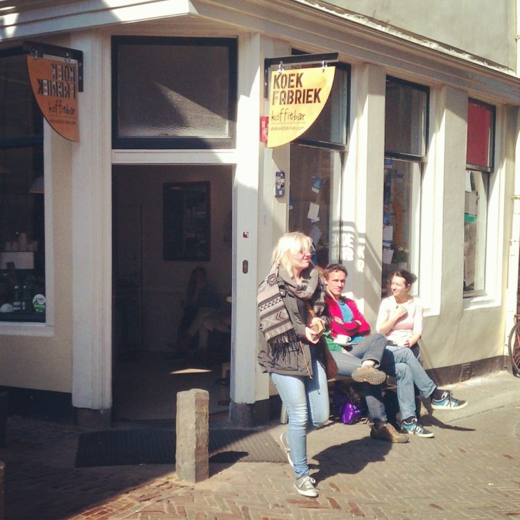 ‘U betaalt alleen de koekjes, de koffie is van ons.’ De barista herhaalt het zinnetje enthousiast bij iedere klant, maar het verveelt of irriteert niet. In de sympathieke Koekfabriek in de Slachtstraat – het steegje tussen ’t Hoogt en de Neude – hebben ze dus lekkere koekjes, maar ook hele fijne koffies. Jette & Jildou gingen langs.