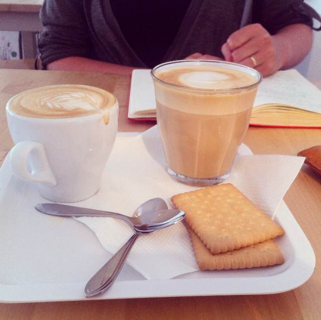 Al een tijdje staat Koffie & Ik op ons lijstje – we stonden er zelfs al een keer voor de deur – maar telkens fietsten we toch even verder. We moeten namelijk wel ongestoord onze koffietest kunnen uitvoeren en als er niet zoveel mensen binnen zijn, is Koffie & Ik nogal een afluistercafé. Als in: zo stil, dat je elkaars gesprekken zonder veel moeite kunt afluisteren. Niet een plek om met je geheime minnaar af te spreken dus, of kritisch koffie te drinken zoals wij. Op deze woensdagmiddag is het echter druk genoeg om vrijuit onze koffiemening met elkaar te kunnen bespreken.