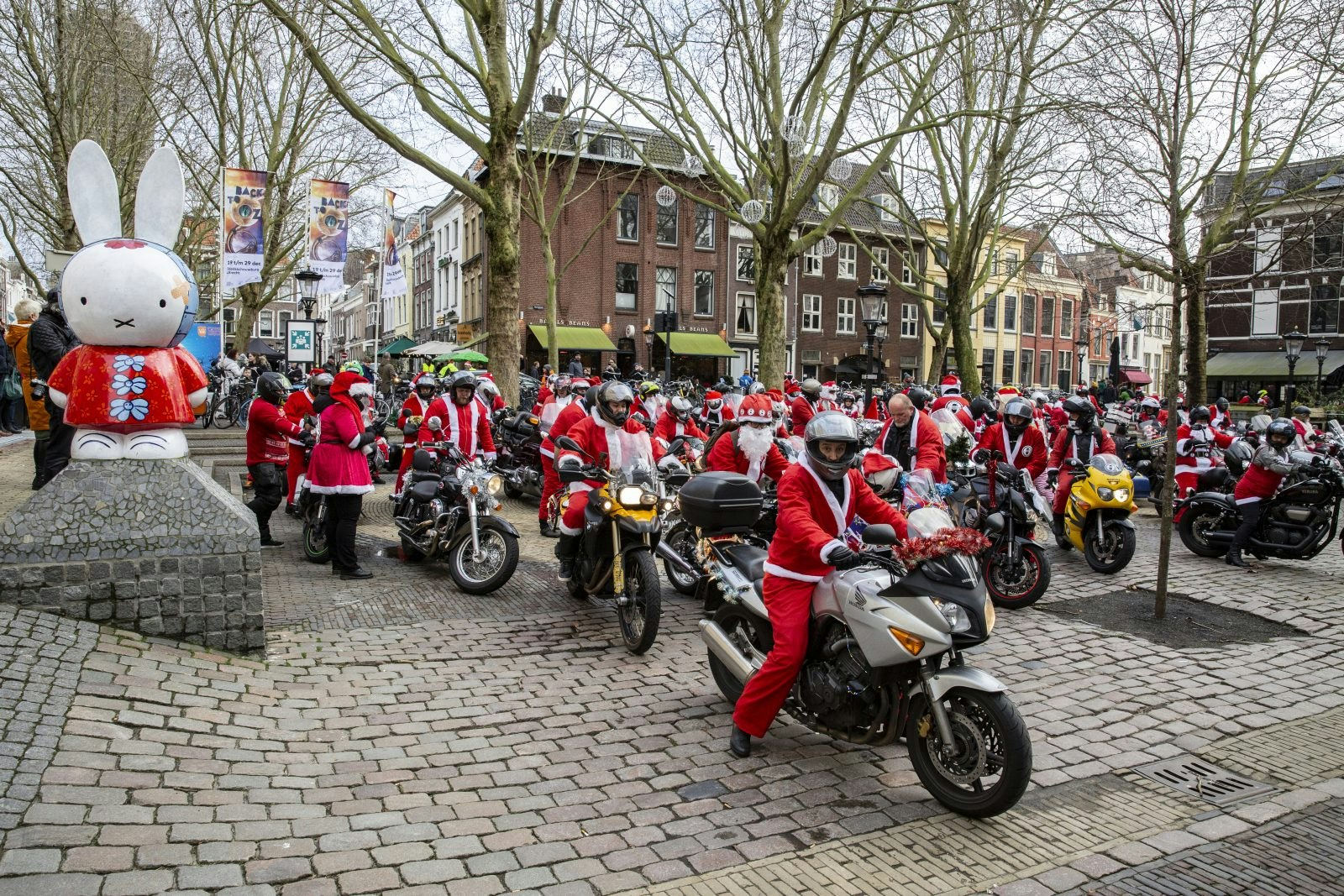 De eerste editie van hardloopevenement de Santa Run Utrecht startte zaterdagmiddag op het Stadhuisplein. Even daarvoor vertrokken tientallen motorrijders vanaf de Mariaplaats om mee te rijden met de Máxima’s Helden Kerstrit.