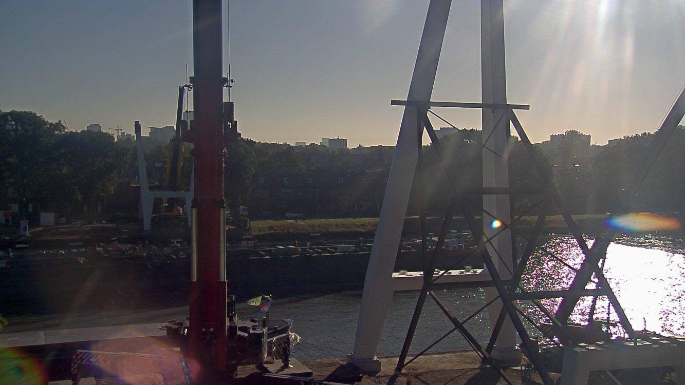 Het skelet van de Dafne Schippersbrug wordt steeds meer zichtbaar. Gisteren is de bouw gestart, via een livestream kun je het invaren en plaatsen van brugdelen volgen.