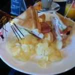 Bij King Arthur krijg je eigenlijk alles wat er op de kaart staat. Geroosterde sandwiches, gerookte kipfilet, spek, ei, tomaat, komkommer, chips en mosterdmayonaise. Prima, zou je zeggen, je weet wat je krijgt, maar waarom komen deze bedrijven weg met zo’n bizar hoge prijs? Ik bedoel, weer €9,50 voor een broodje met wel erg simpele ingrediënten. De ‘gerookte kip’ kan net zo goed een plakje ham zijn, ik proef het verschil niet. De komkommer en tomaat zijn zo dik gesneden dat je denkt dat er tijdens het mis en placen enige haast geboden was. De ingrediënten zijn op de broodjes gekwakt, prikker erdoor en een handvol chips ernaast. Het lijkt alsof hier de winst vandaan komt, niemand klaagt en weer komt een horecagelegenheid weg met een simpel, niet speciaal, broodje voor € 9,50.
