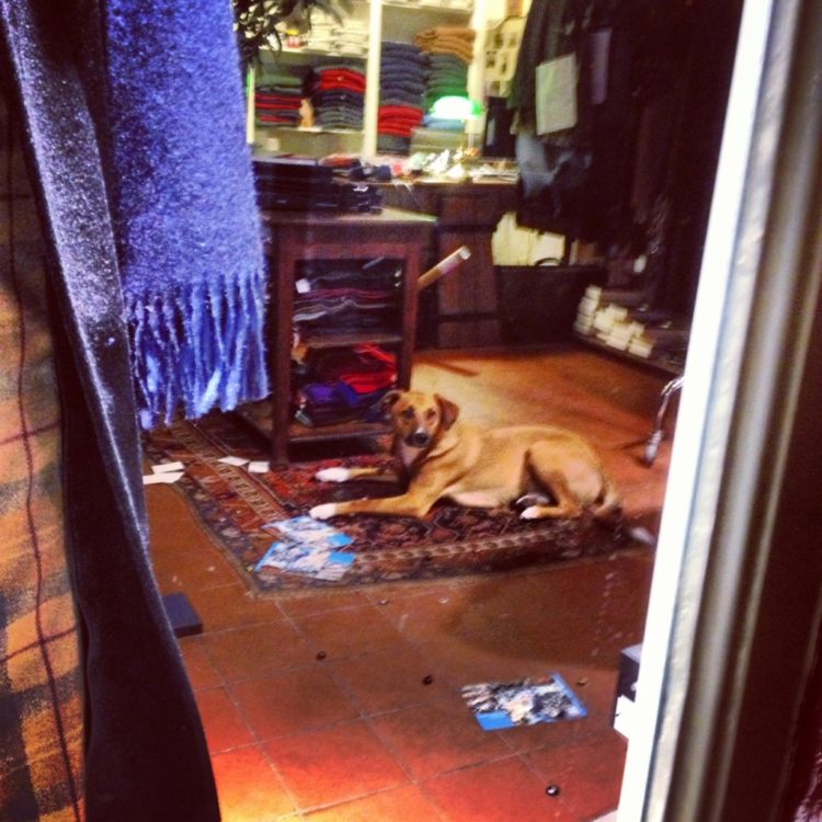 Was niets aan de hand hoor. Knopendoosje met daarop wat folders en daarop weer mijn visitekaartjes was gevallen. Ik denk eerder dat de kat dat gedaan heeft! Maar dank voor leuk artikel. tja en Wilma, kat gaat niet terug naar Corfu en hond niet baar Portugal! Ik denk ondanks alles dat toch ik een goeie baas ben. Ik woon boven de zaak en was gewoon thuis….