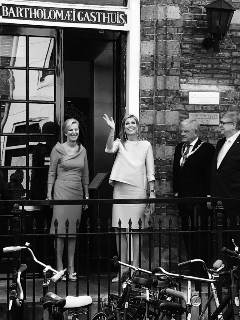 Koningin Máxima bracht vanmorgen een bezoek aan het Bartholomeus Gasthuis in Utrecht. Het gasthuis viert vandaag zijn 650-jarig jubileum.