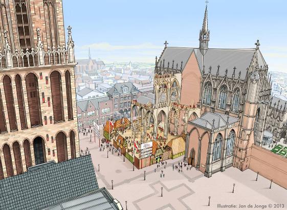 Terwijl de metalen wanden van de nieuwe Schatkamer onder het Domplein al met behulp van grootse machines hun plek onder de grond vinden, rijst nu wellicht de vraag: wat gebeurt met het plein zelf, wanneer de schatkamer eenmaal af is?