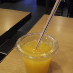- Drankjes: Een half bakje slappe koffie verkeerd in een kartonnen beker, petfles Cola-Light, maar wel verse jus. Deze komt helaas in een plastic beker, maar met rietje.