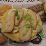 Bij Bakerstreet hebben ze maar liefst keuze uit twee clubsandwiches. Namelijk een “Club gezond” en een Club gezond chicken””. Ik neem de”chicken”.Het broodje wordt als volgt beschreven: club gezond chicken met kaas, kip, ei, rauwkost en kruidensaus. Ik neem de ingrediënten weer even 1 voor 1 met u door. Om te beginnen het broodje. Dit is een simpele Italiaanse bol die doormidden wordt gesneden. Dan worden er 2 plakken kaas opgelegd, vervolgens een gekookt eitje en daarbovenop een soort mosterdmayo die voor kruidensaus door moet gaan. Vervolgens een handvol sla. 5 stukjes gerookte kip en twee kwarten tomaat en twee stukjes komkommer (rauwkost?) maken de sandwich af.