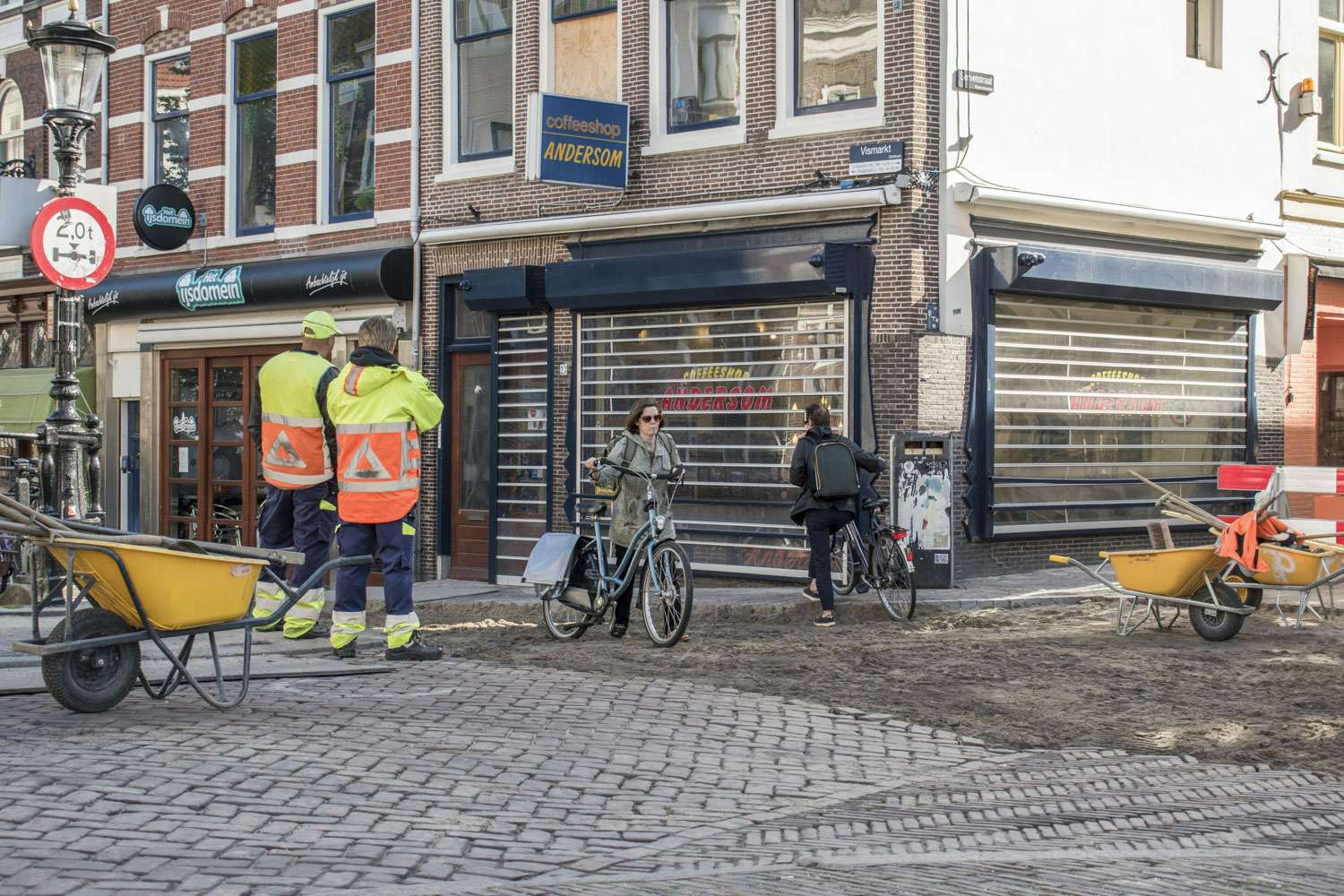 De kruising van de Vismarkt en de Servetstraat ligt vanaf vandaag door het leggen van nieuwe bestrating helemaal open. Fietsers en voetgangers moeten omlopen of afstappen. De werkzaamheden duren twee weken.