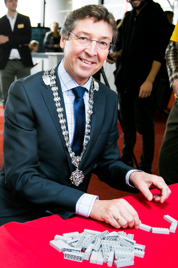 “Mijn broertjes en ik waren allemaal Lego-fan. Dat zorgde ervoor dat we altijd allemaal Lego vroegen voor Sinterklaas en onze verjaardagen en we dus een behoorlijke collectie hadden”, vertelt Wolfsen. Ruziën om wat van wie wie was, deden ze niet. “Het was collectief bezit. Ik was vooral fan van de treinen.” De Dom heeft hij nog nooit gebouwd, maar daar kwam vandaag verandering in: aan de burgemeester de eer om het eerste steentje te leggen van de Domtoren die de aankomende week gebouwd zal worden.
